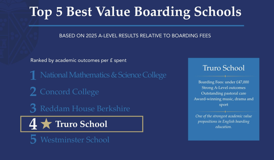 Truro School was founded with an ethos of compassionate ambition. We have high academic standards that are supported and balanced alongside a well-developed and personalised pastoral support network, excellent facilities and an extensive range of co-curricular opportunities.