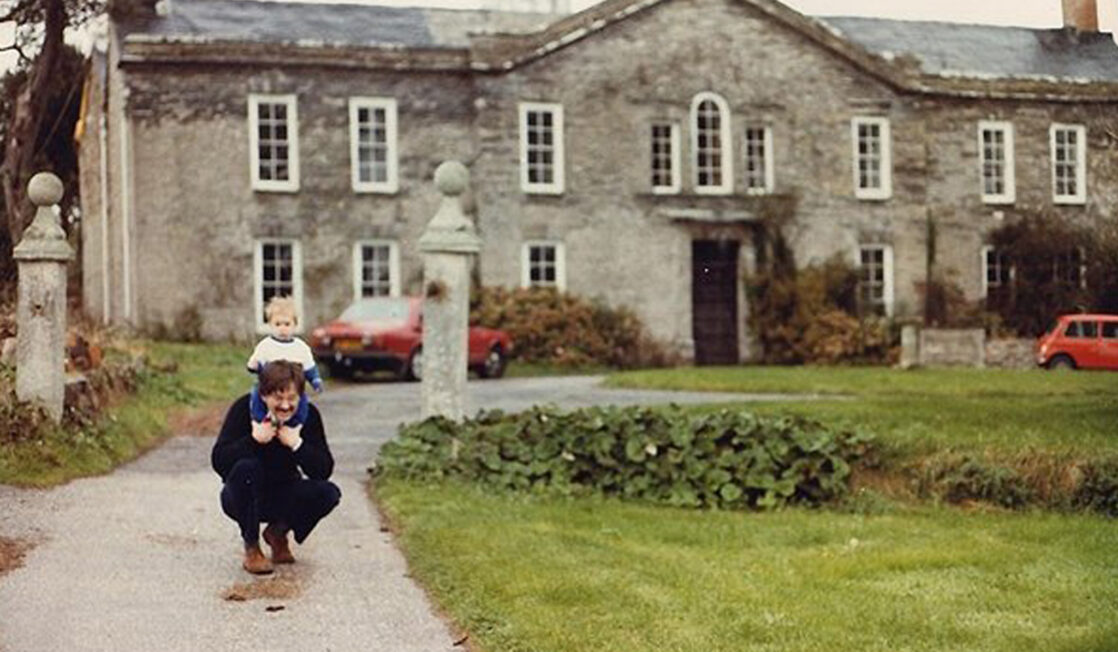 Jess as a baby with her Dad outside Harlyn House before it became The Pig