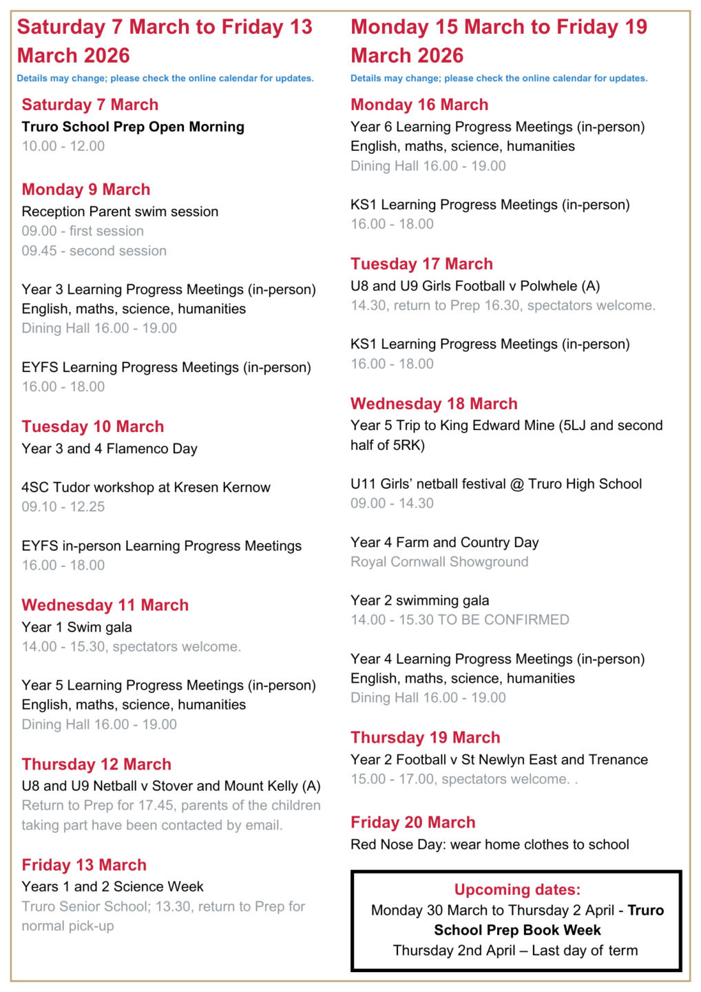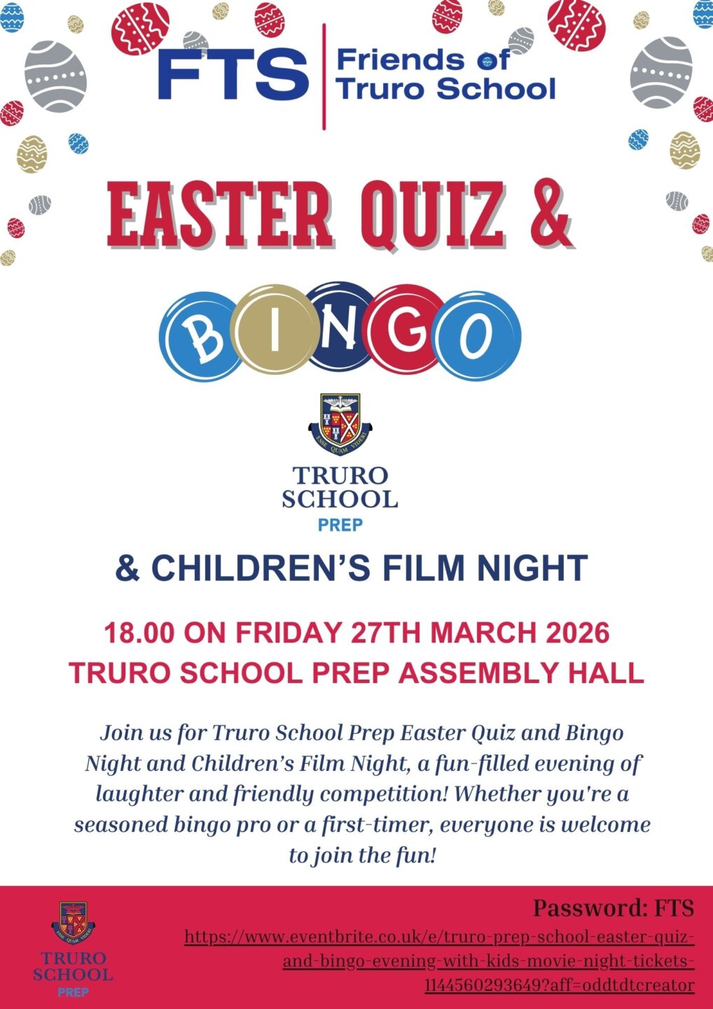 The Friends of Truro School (FTS) would like to invite you to the Easter Quiz and Bingo Night, with Children’s Film Night. The event is being held on Friday, 27th March, 2026 from 18.00 in the Prep Assembly Hall.