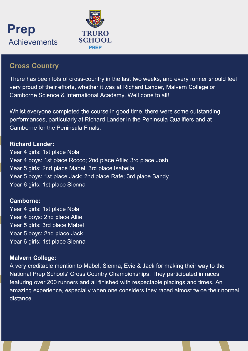 It has also been a week of travel, with sporting fixtures on the local, county, regional and national stage, incorporating trips to Penzance, Camborne, Bristol, Millfield and Malvern (and Cardiff for those who attended the National Nipper Pool Championships with their Surf Lifesaving clubs on Sunday). Educational trips to Lanhydrock House and King Edward Mine have also featured, and back here at school, play rehearsals, music rehearsals, and a raft of visitors have kept us extremely busy.