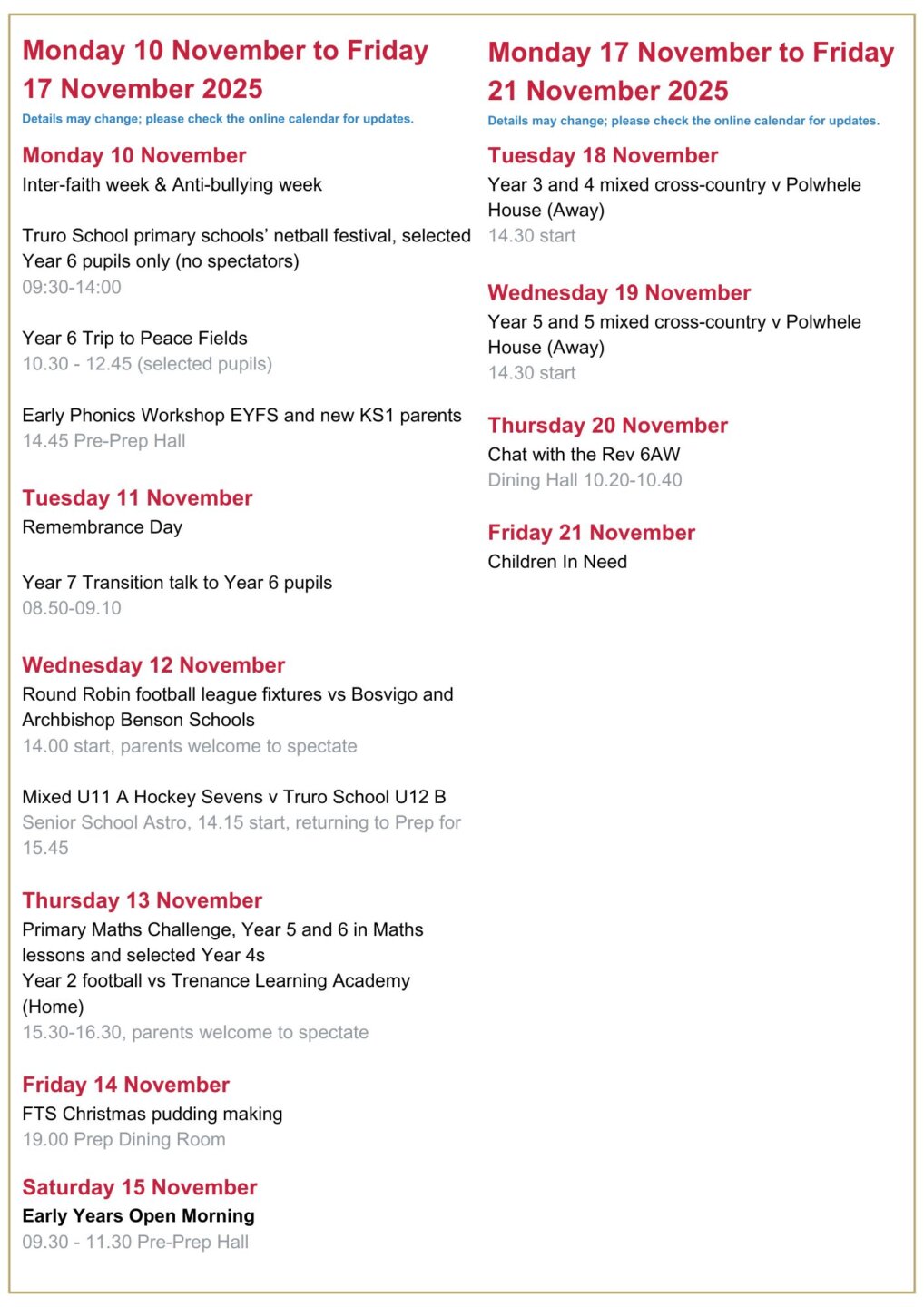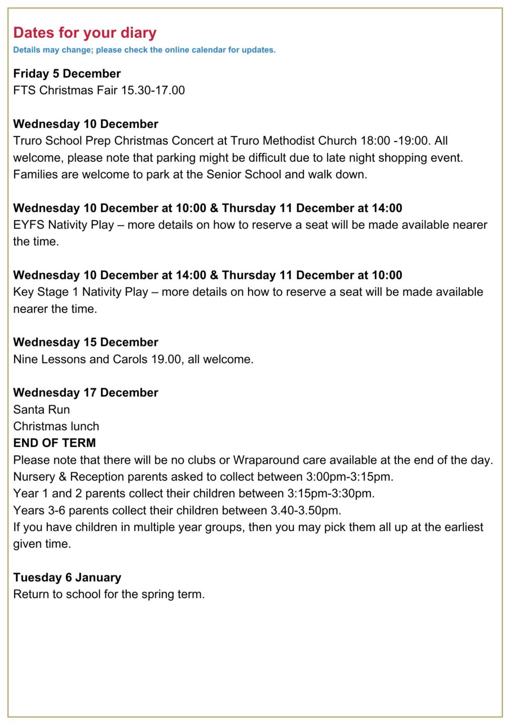 As we approach the weekend, I hope that you all enjoy the company of your excellent children, and I take this opportunity to thank you once again for ‘lending them to us’ each week.