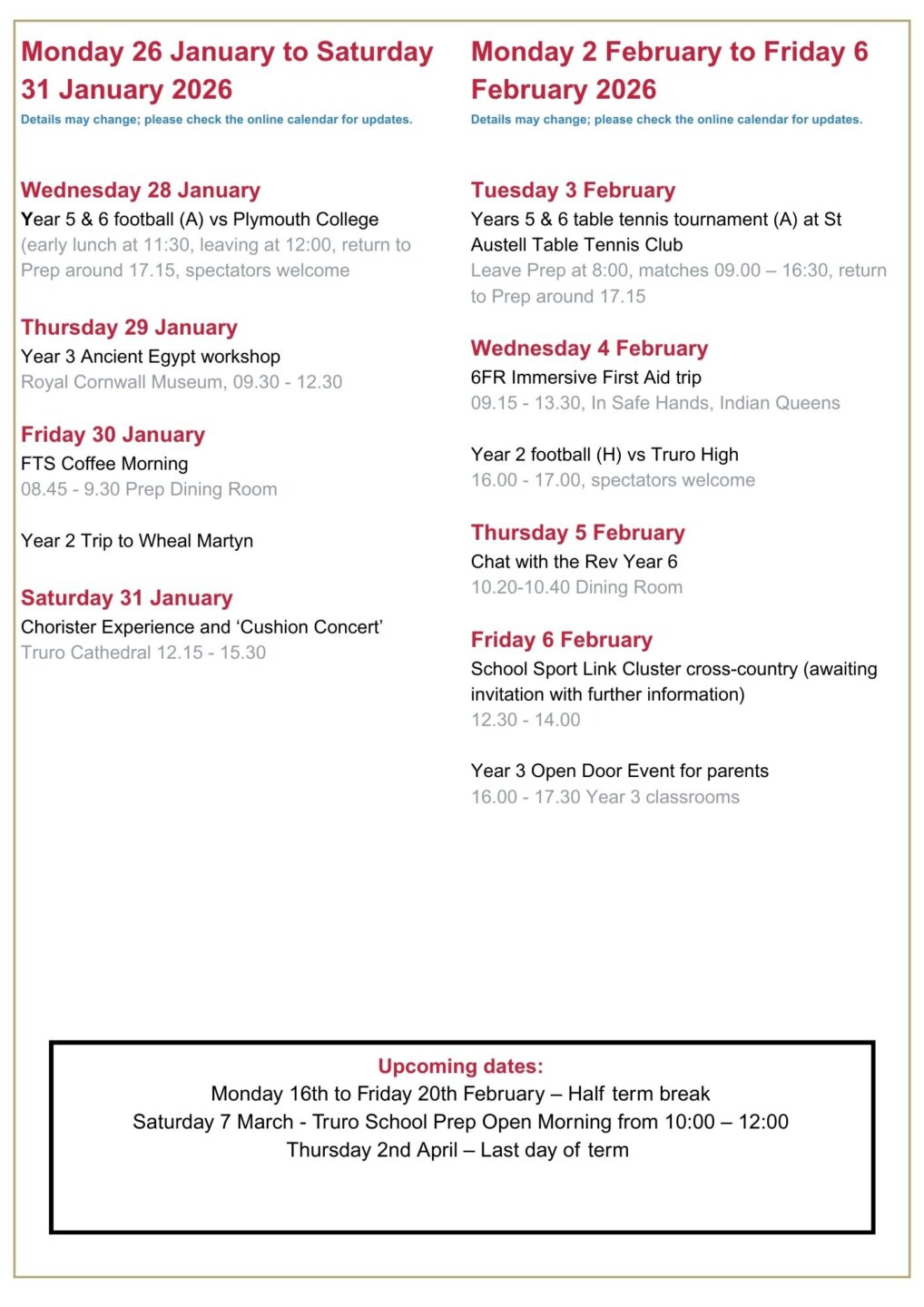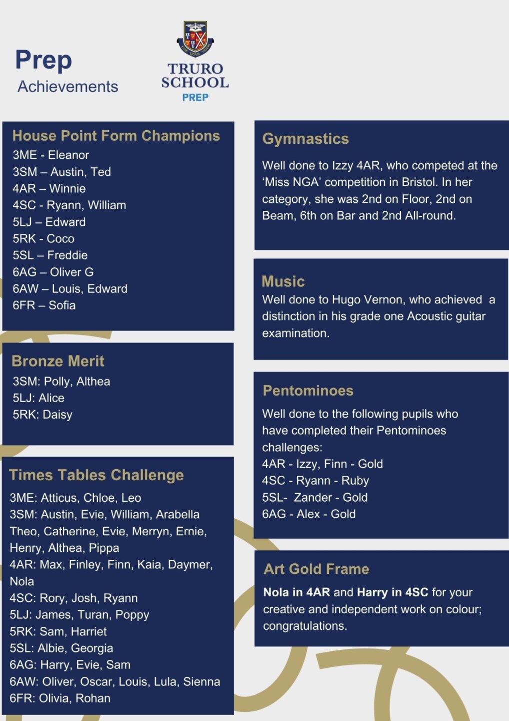 Turning to Saturday, I am sure that you will join me in wishing all our Year 6 children every success as they tackle the Truro School entrance assessments.