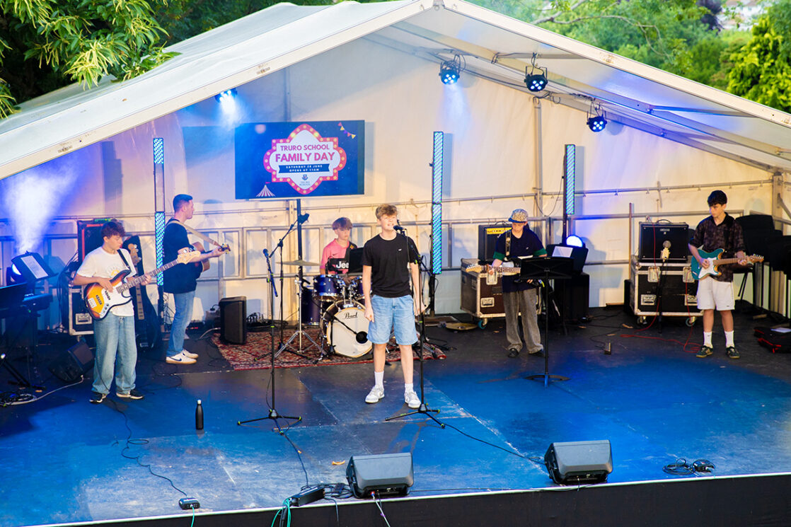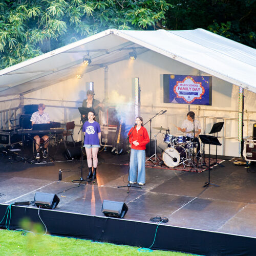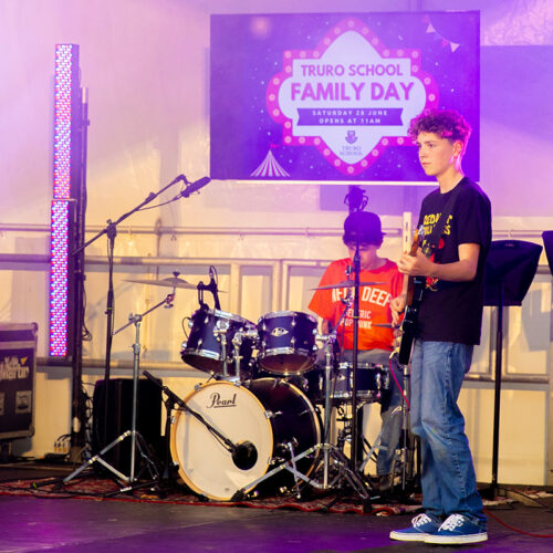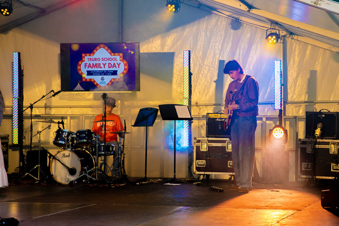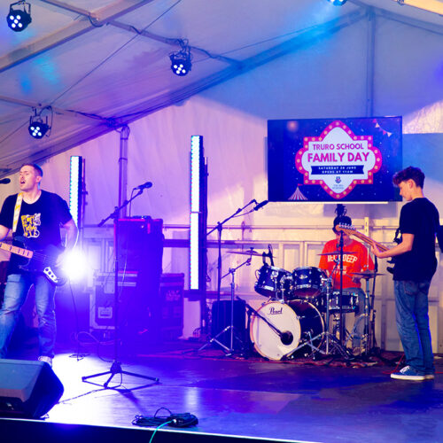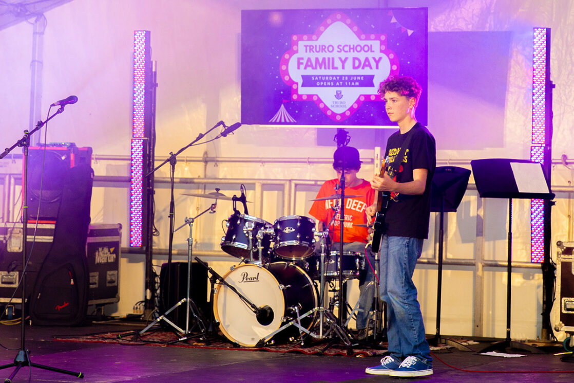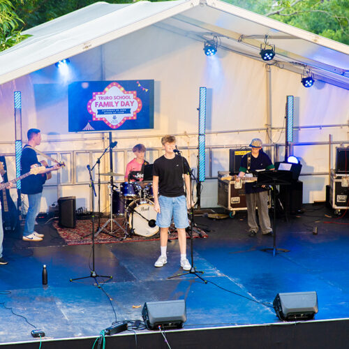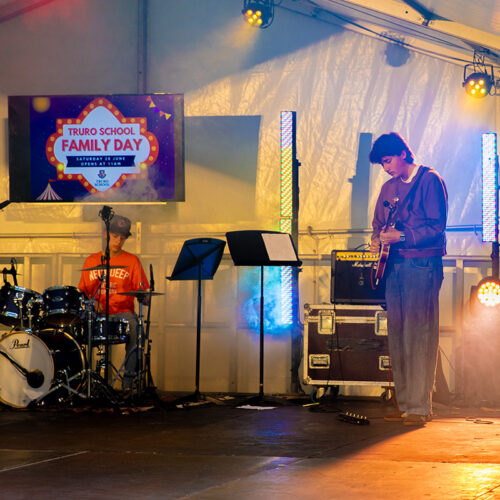 As the sun began to set, the main stage became the heart of the evening’s celebrations. The audience was treated to a lively Musicals performance featuring show-stopping numbers. The energy reached its peak with the Truro School Rock Performance, which saw our talented bands take to the stage alongside Harry, a very special guest from Falmouth School, bringing the day to an electric finish.