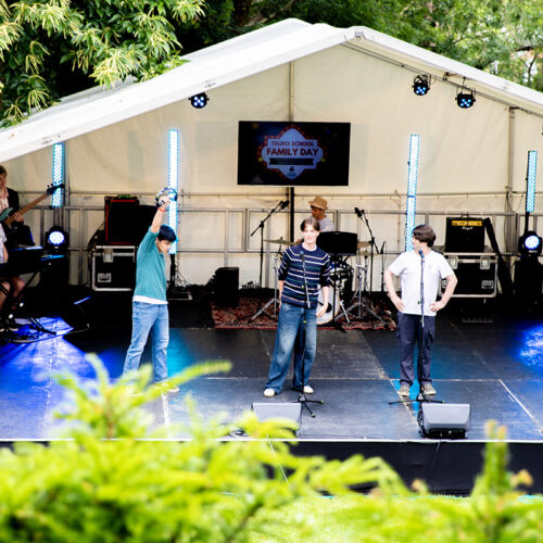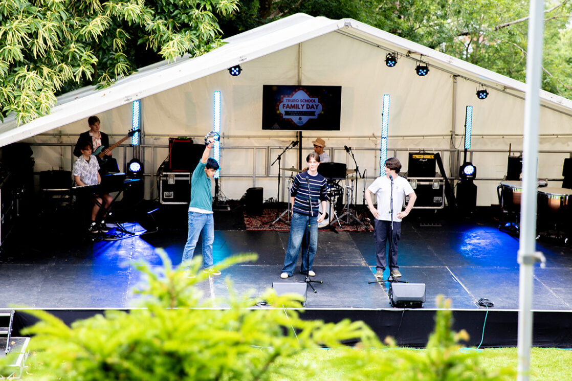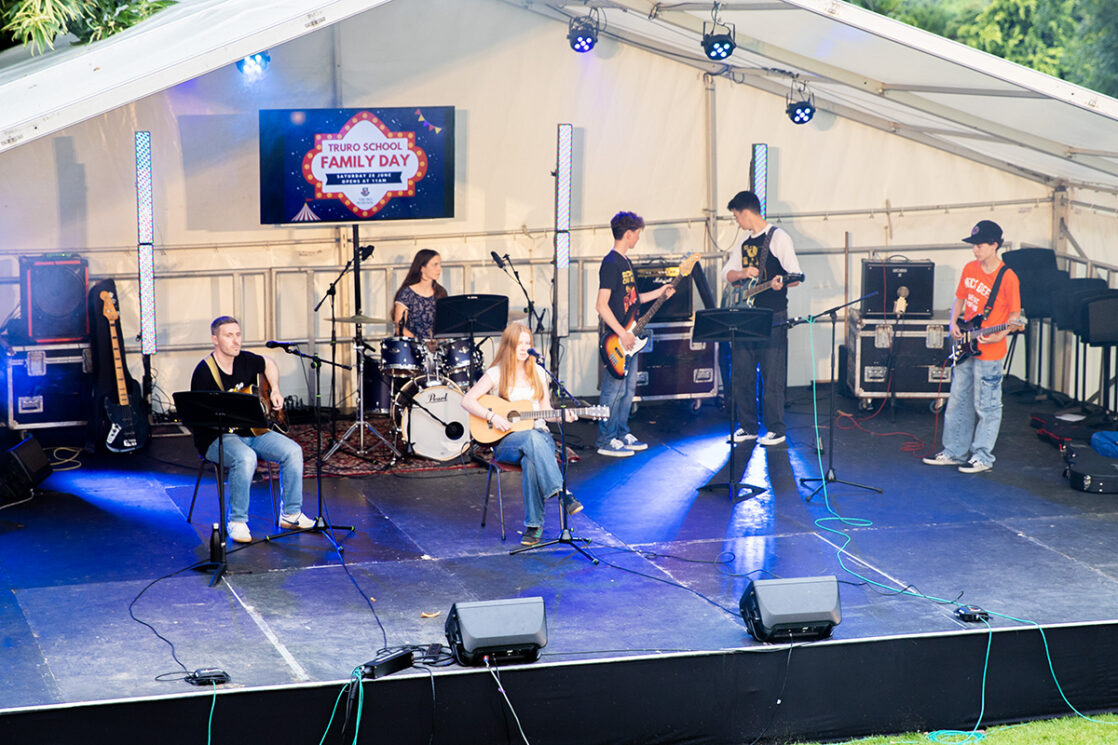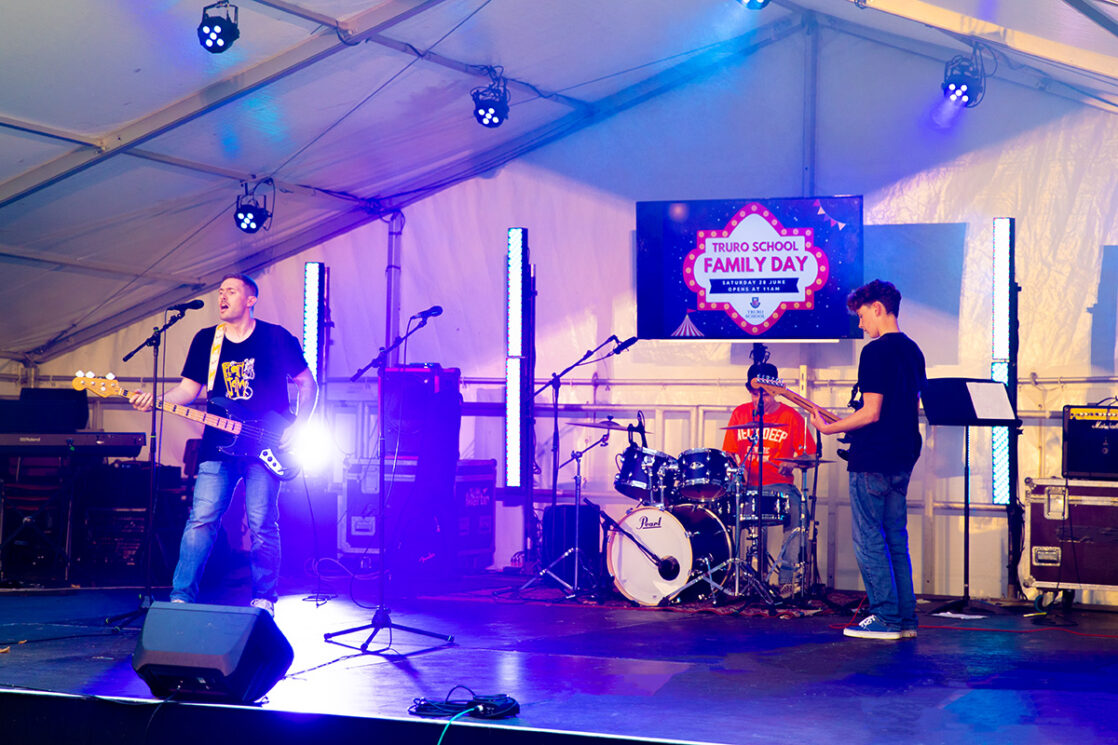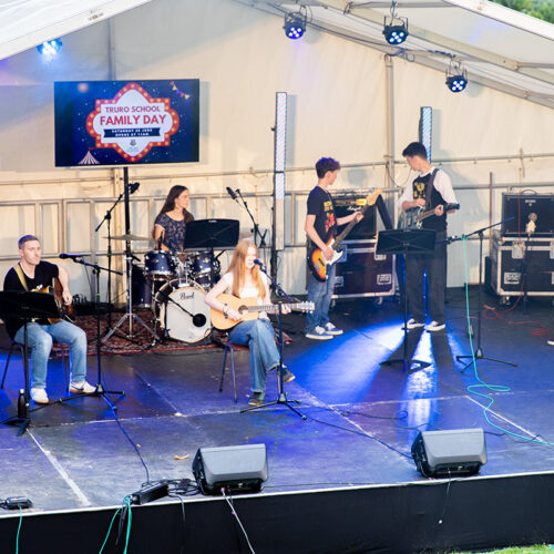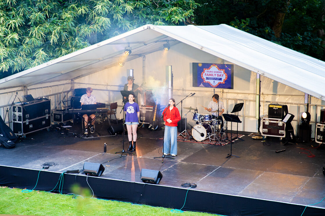 As the sun began to set, the main stage became the heart of the evening’s celebrations. The audience was treated to a lively Musicals performance featuring show-stopping numbers. The energy reached its peak with the Truro School Rock Performance, which saw our talented bands take to the stage alongside Harry, a very special guest from Falmouth School, bringing the day to an electric finish.