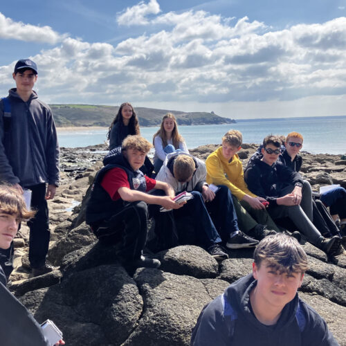 This week all of our 4th Year Geologists enjoyed beautiful weather for their fieldwork at Praa Sands and Godrevy. The day provided a perfect opportunity for pupils to see in the field what they have been learning in class all year, and all within an hour’s drive from school. They began by identifying igneous, metamorphic and sedimentary rocks through close examination of their textures. They then were able to consolidate their understanding of how each rock was formed by group discussion designed to promote their retrieval of core content from the GCSE course.