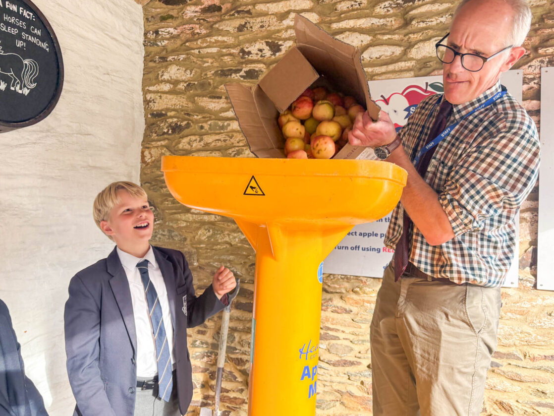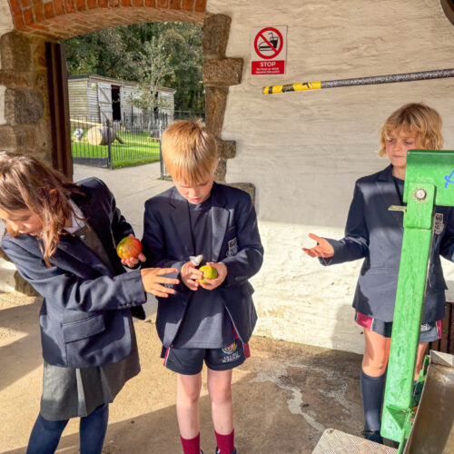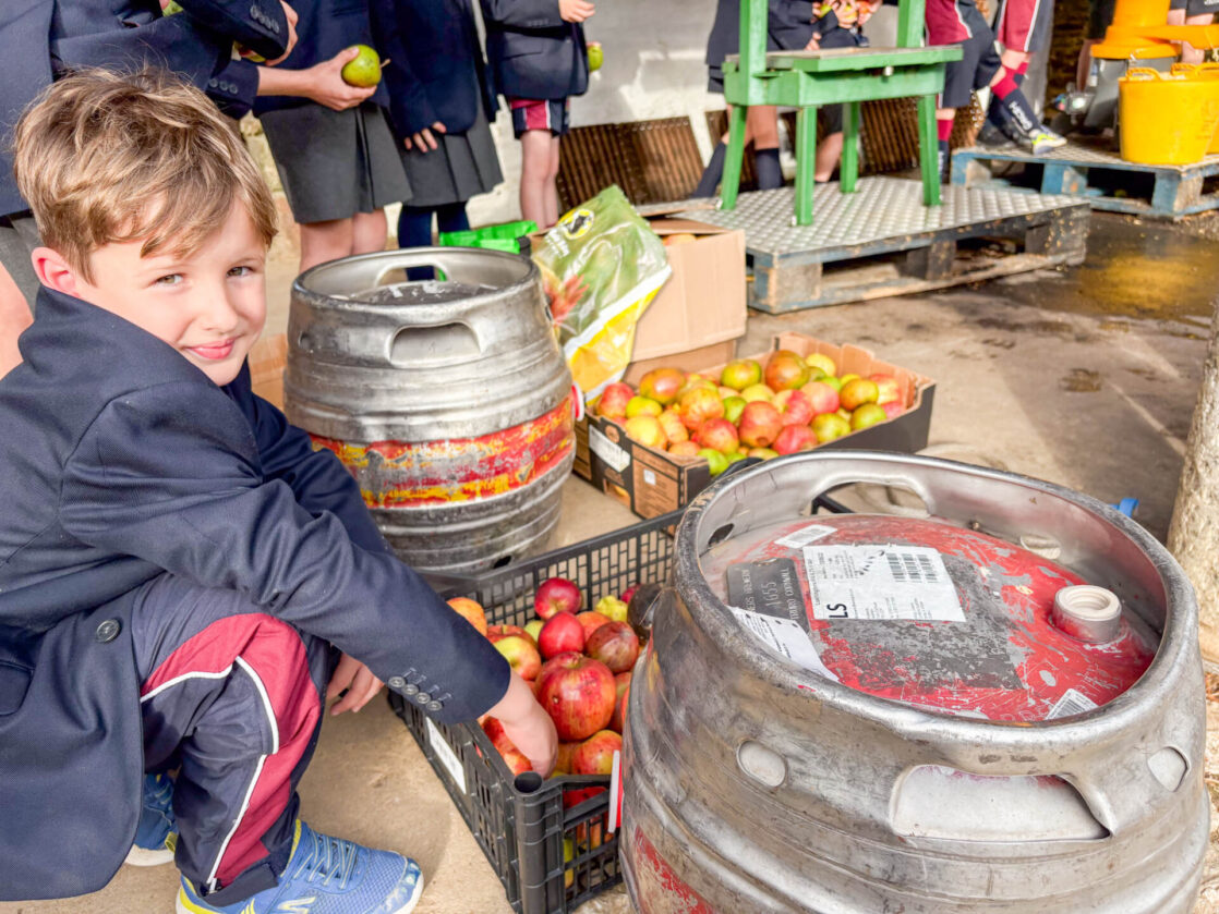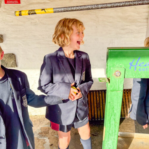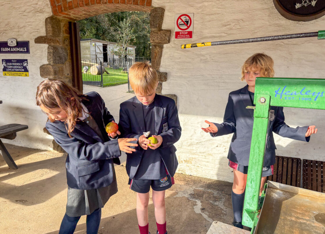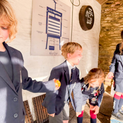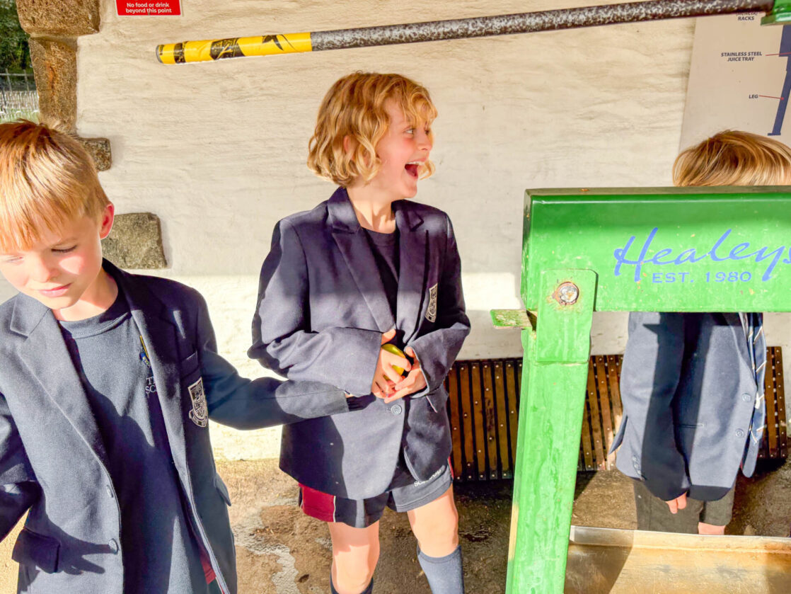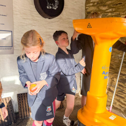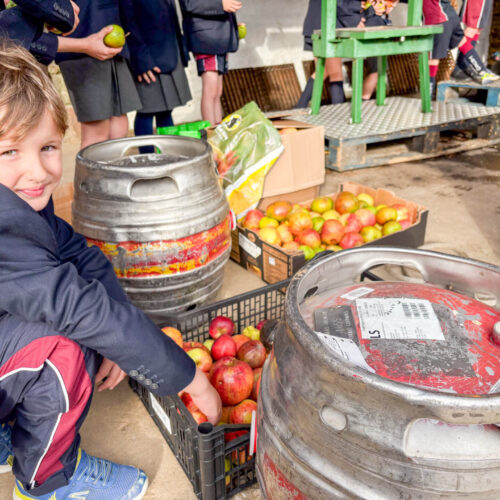 Our Prep community is now able to purchase and sample the juice, which is available from Mr Silk at morning drop off and pick up. Any donations made will also go to ‘Farms for City Children’, a charity set up by author Michael Morpurgo. Serendipitously, some of the apples used were from the very tree planted in the school orchard by Michael Morpurgo himself, an event captured in some of the photographs below.