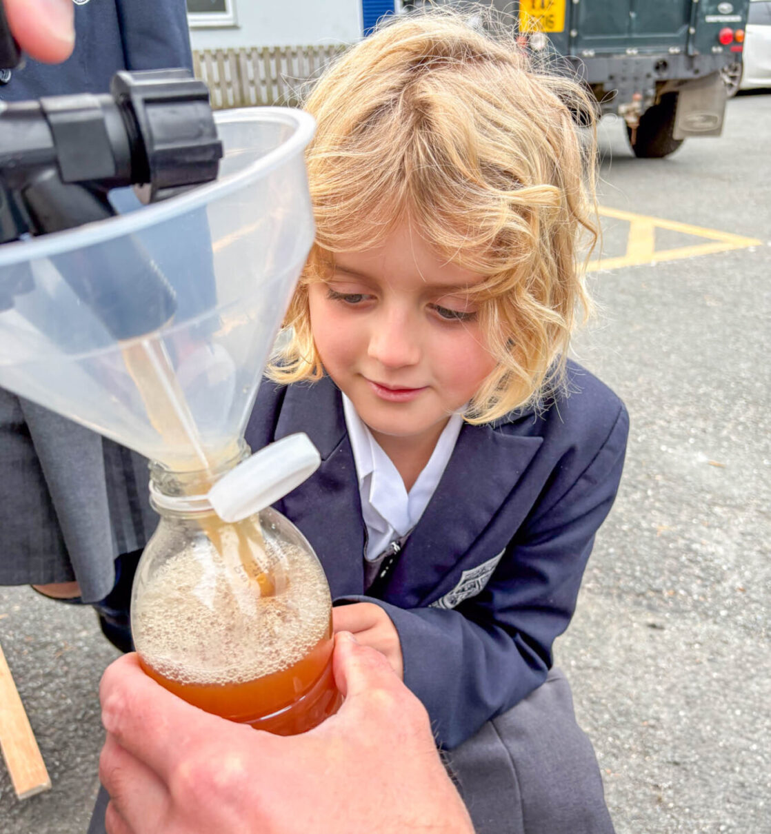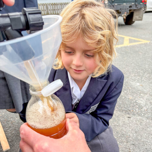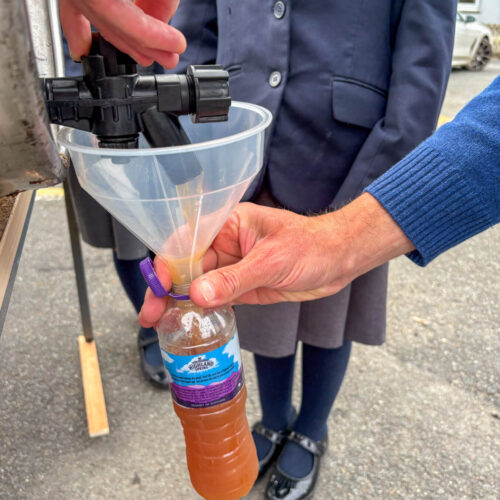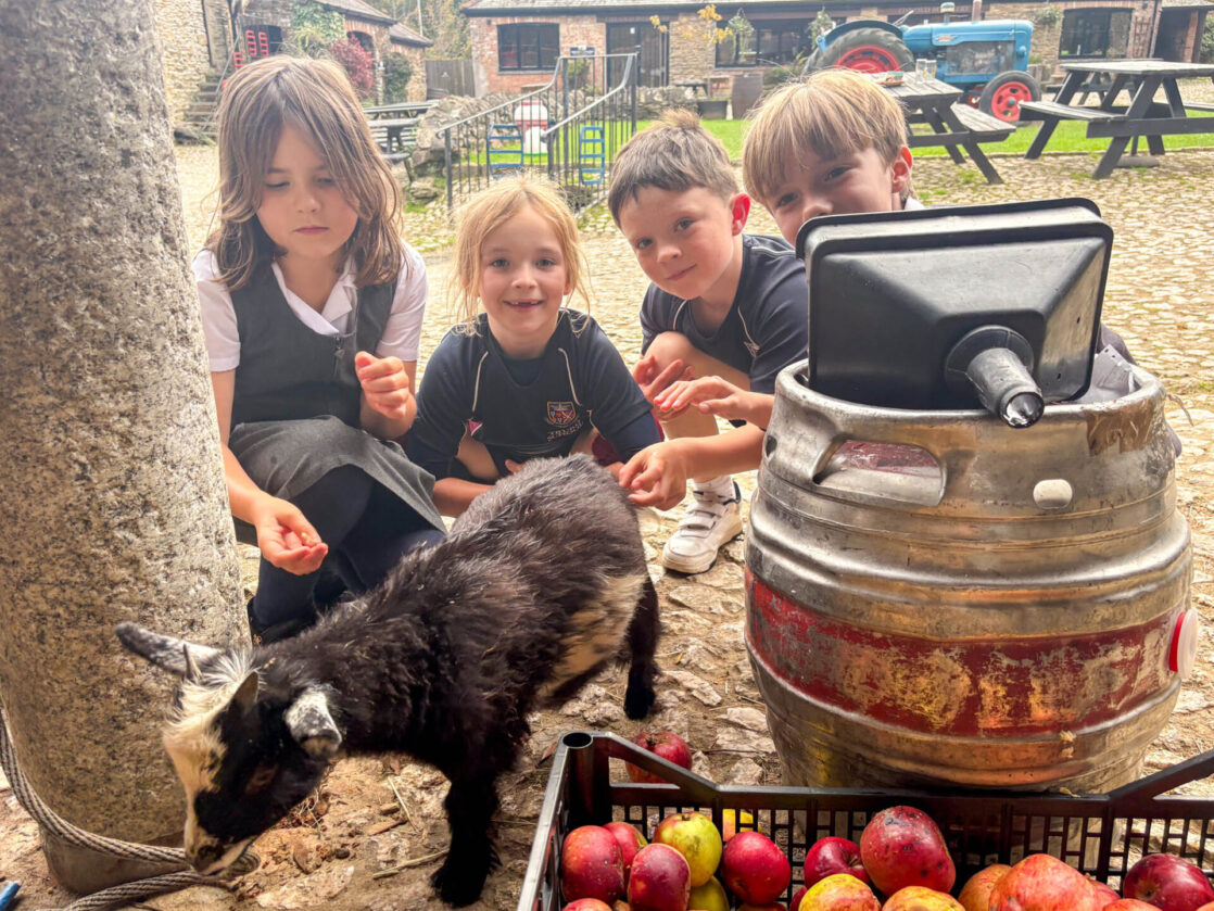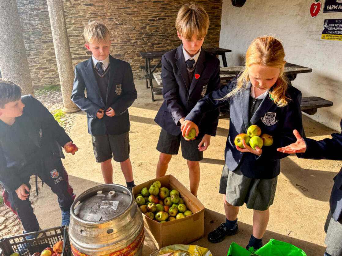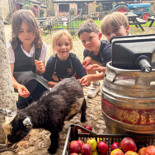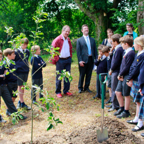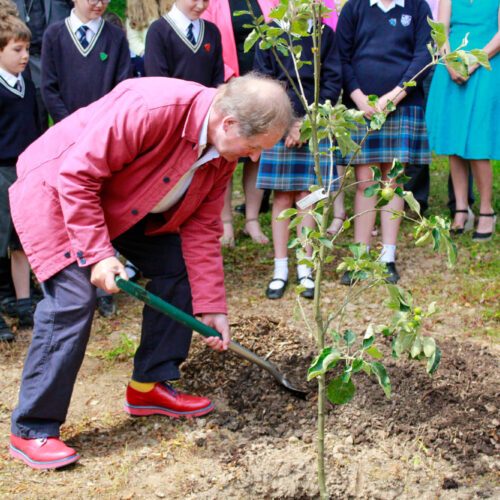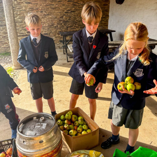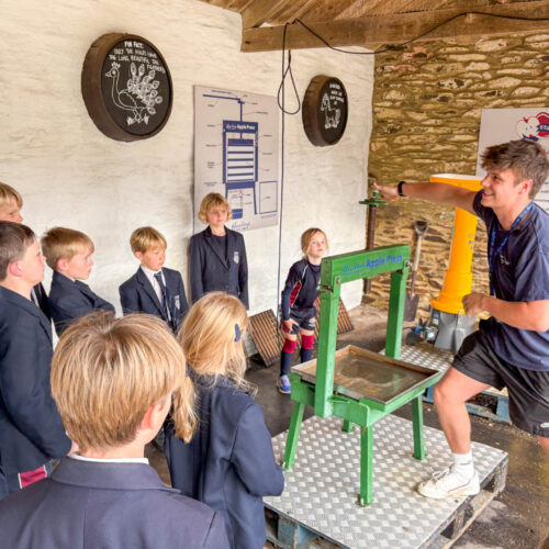 Our Prep community is now able to purchase and sample the juice, which is available from Mr Silk at morning drop off and pick up. Any donations made will also go to ‘Farms for City Children’, a charity set up by author Michael Morpurgo. Serendipitously, some of the apples used were from the very tree planted in the school orchard by Michael Morpurgo himself, an event captured in some of the photographs below.