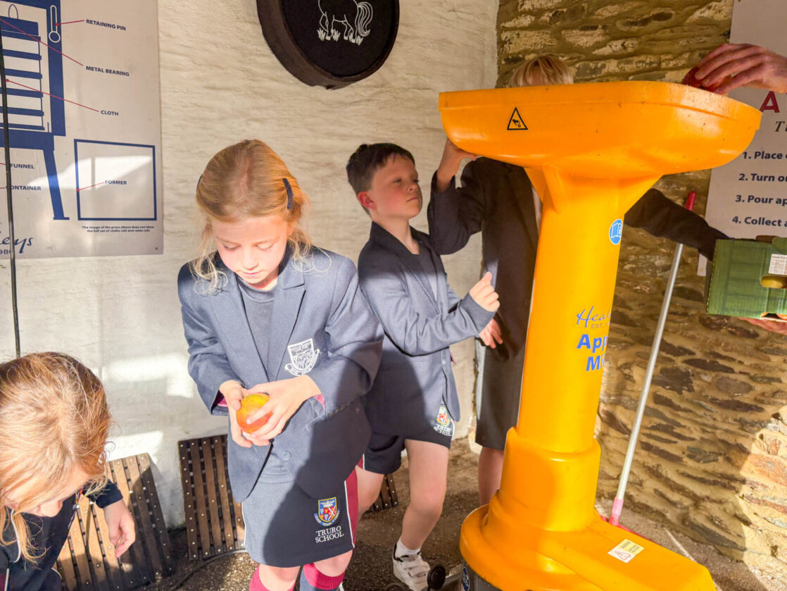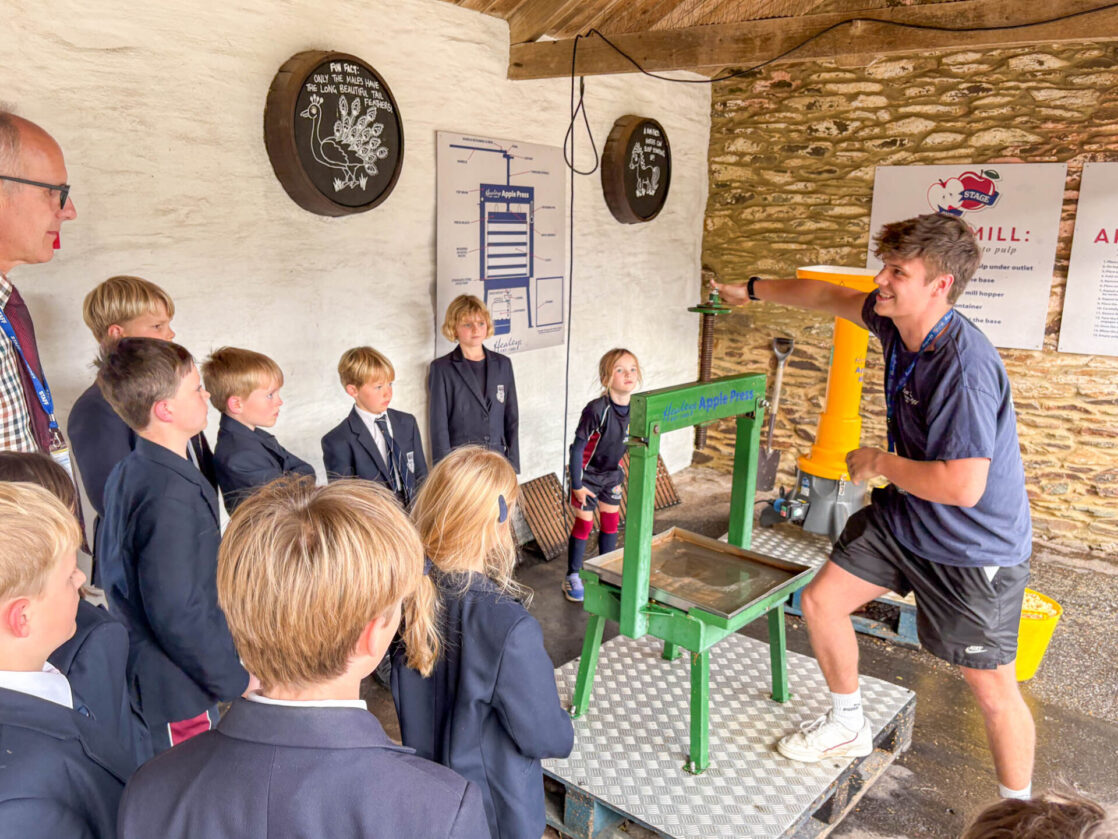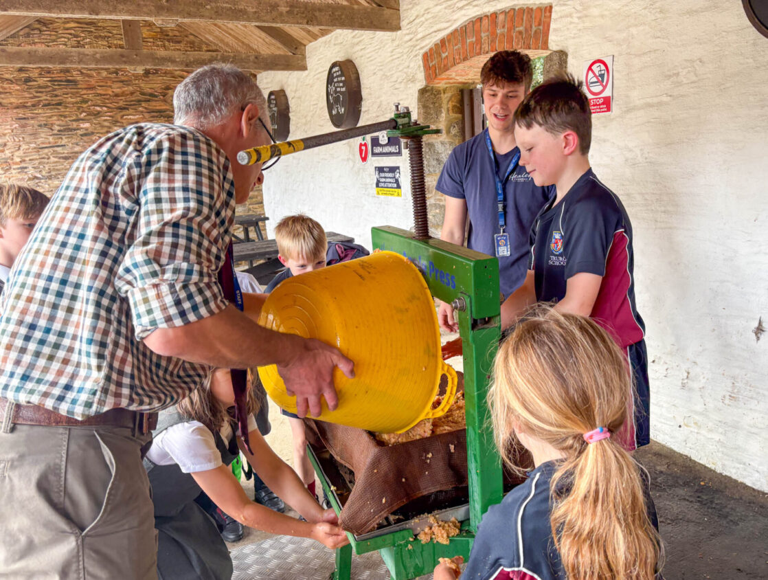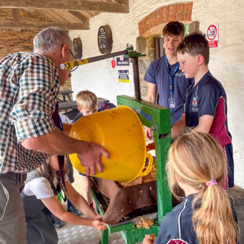 Mr Silk and his team of intrepid volunteers have continued with their apple antics with a trip to learn the rudiments of apple pressing, thanks to the team at Healeys Cornish Cyder Farm.