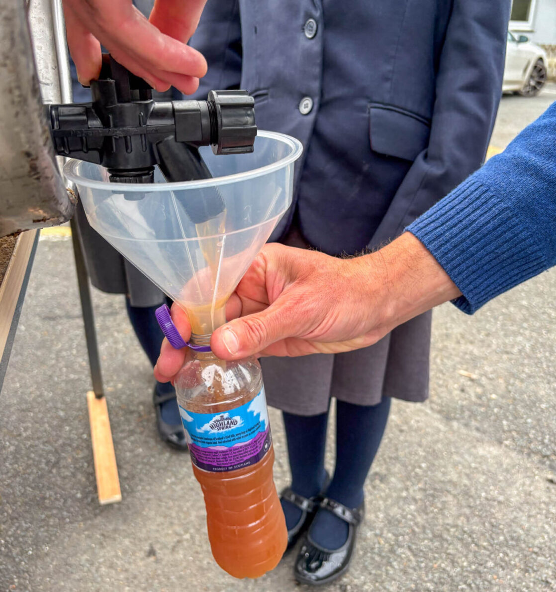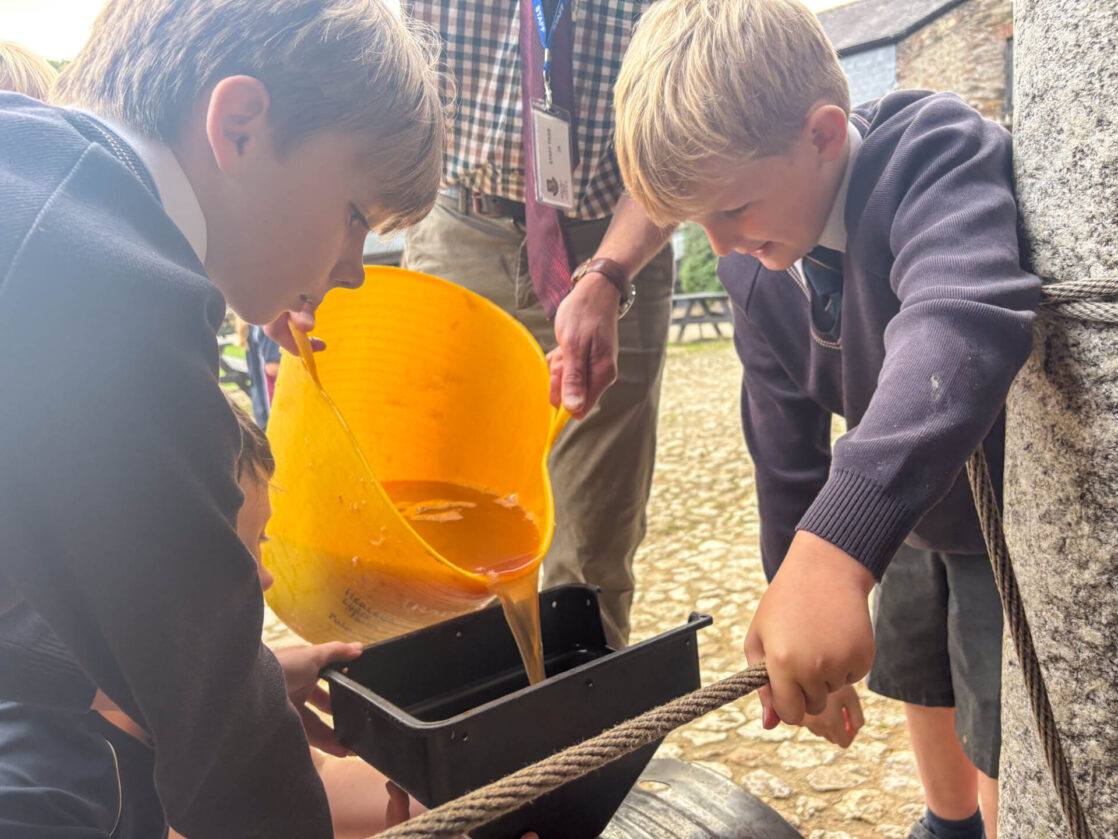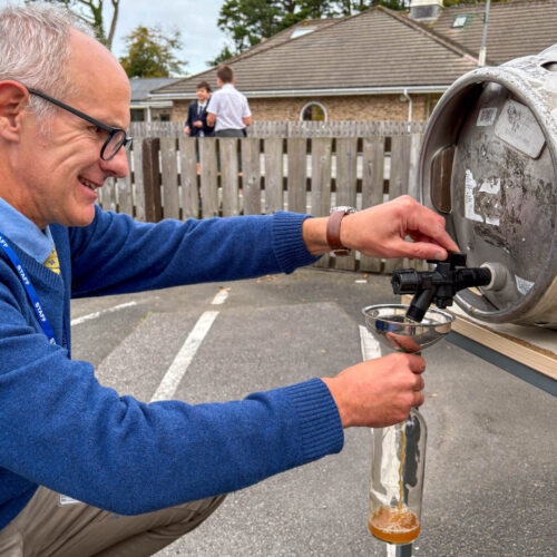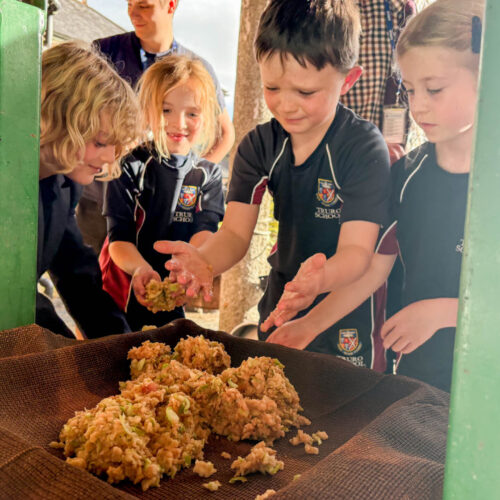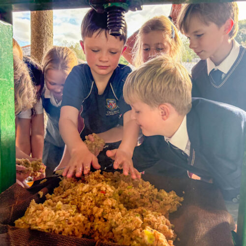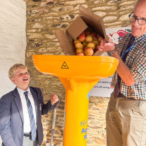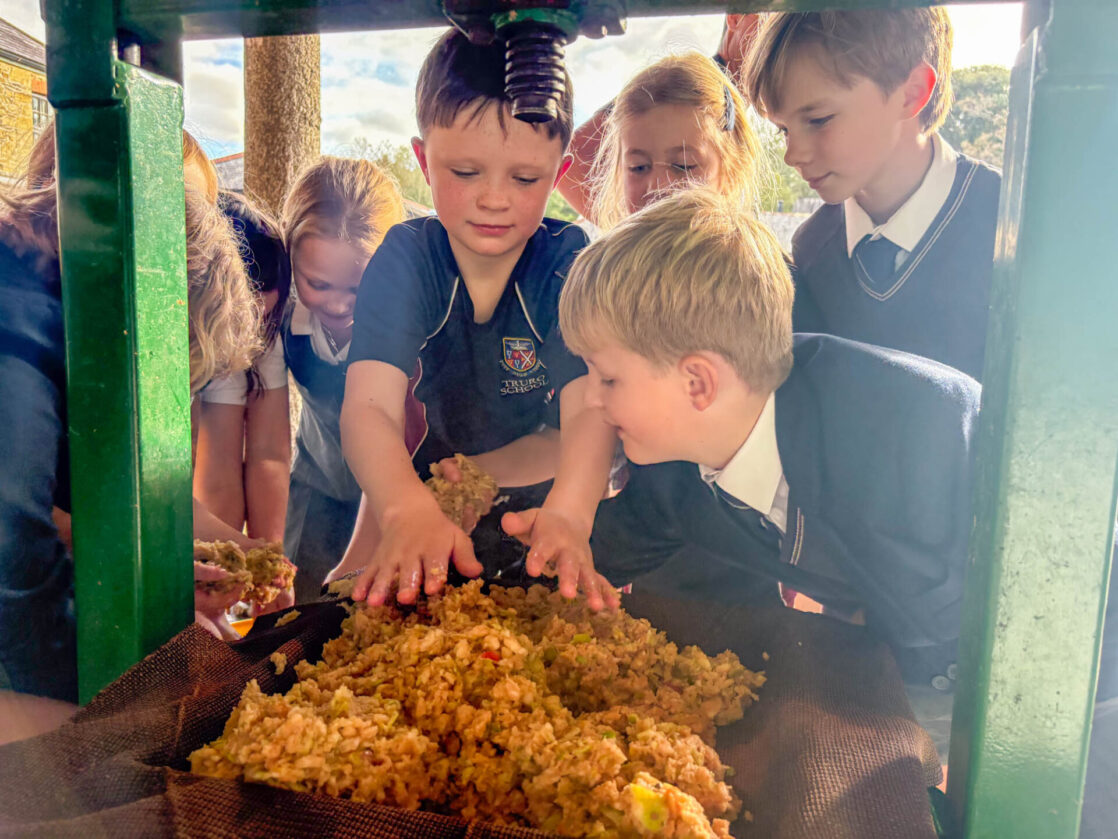 Having made chutney and crumbles to sell at the Christmas Fayre, the team took the remaining 50 kilos of apples, picked at Prep and donated by families, to be turned into home-made apple juice. Under expert guidance, our pupils got stuck into the pulping process, before pressing the pulp to make 30 litres of delicious apple juice.