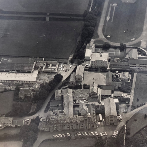 A rainy Thursday in January for the Alumni Relations team was brightened by a visit from Peter Greenslade CO66 who visited to share with us valuable items, articles and artefacts collected from his and his sons’ time at Truro School. Most notably, Peter donated aerial photographs from c1976 and 1977, a rugby pitch flag and various whole school photos, which were unseen, new acquisitions to the School Archive. Peter was at Truro School from 1956-66, his brother Anthony from 1952-59, his son – also Anthony, from 1978-86, his daughter Jo Greenslade from 1989-91 and his uncle, John Collins from 1938-45.