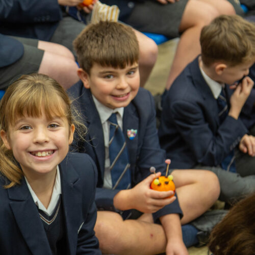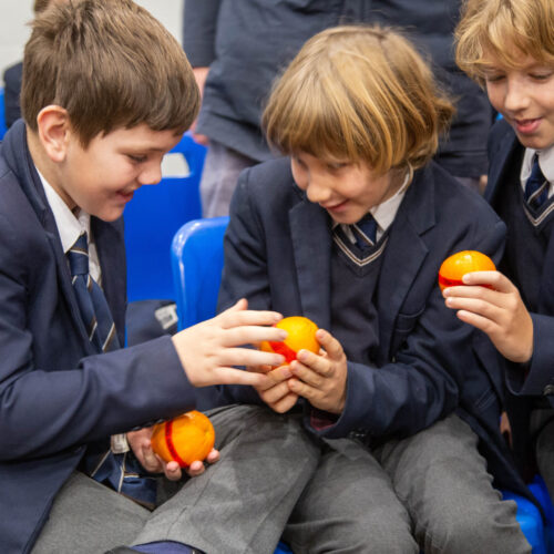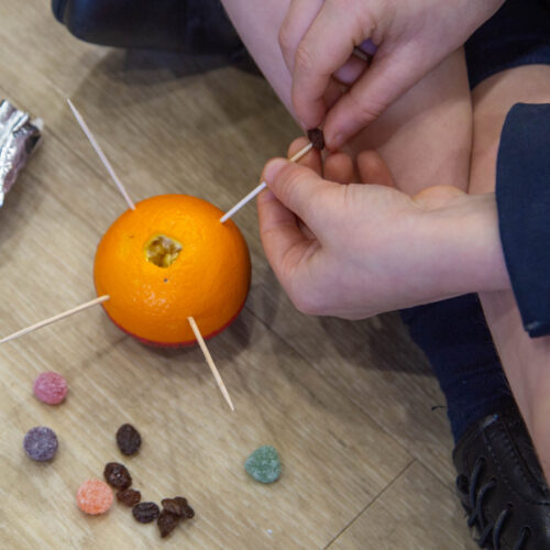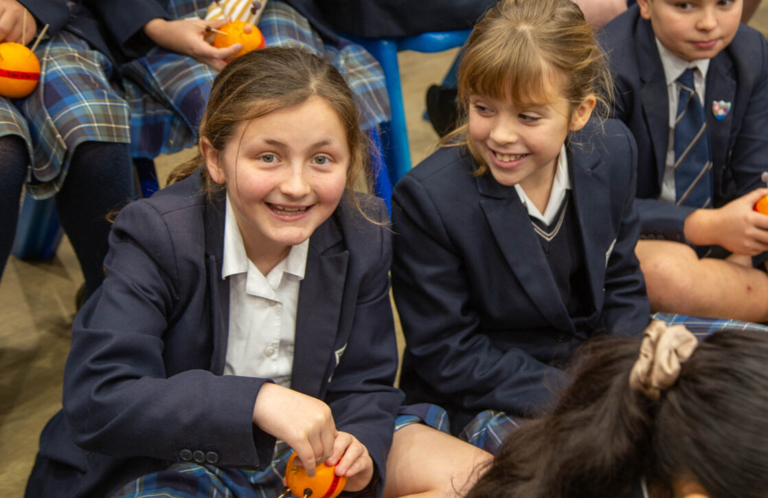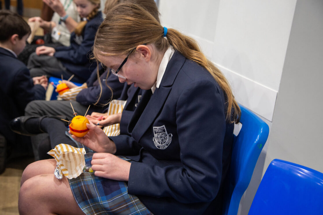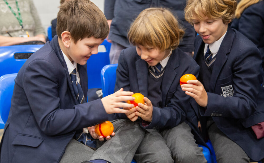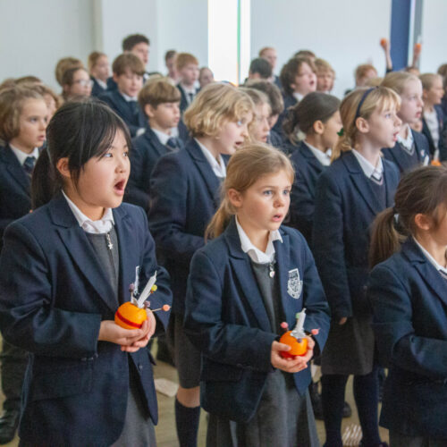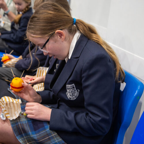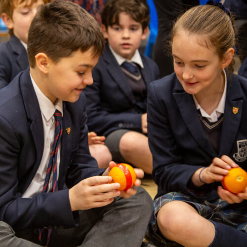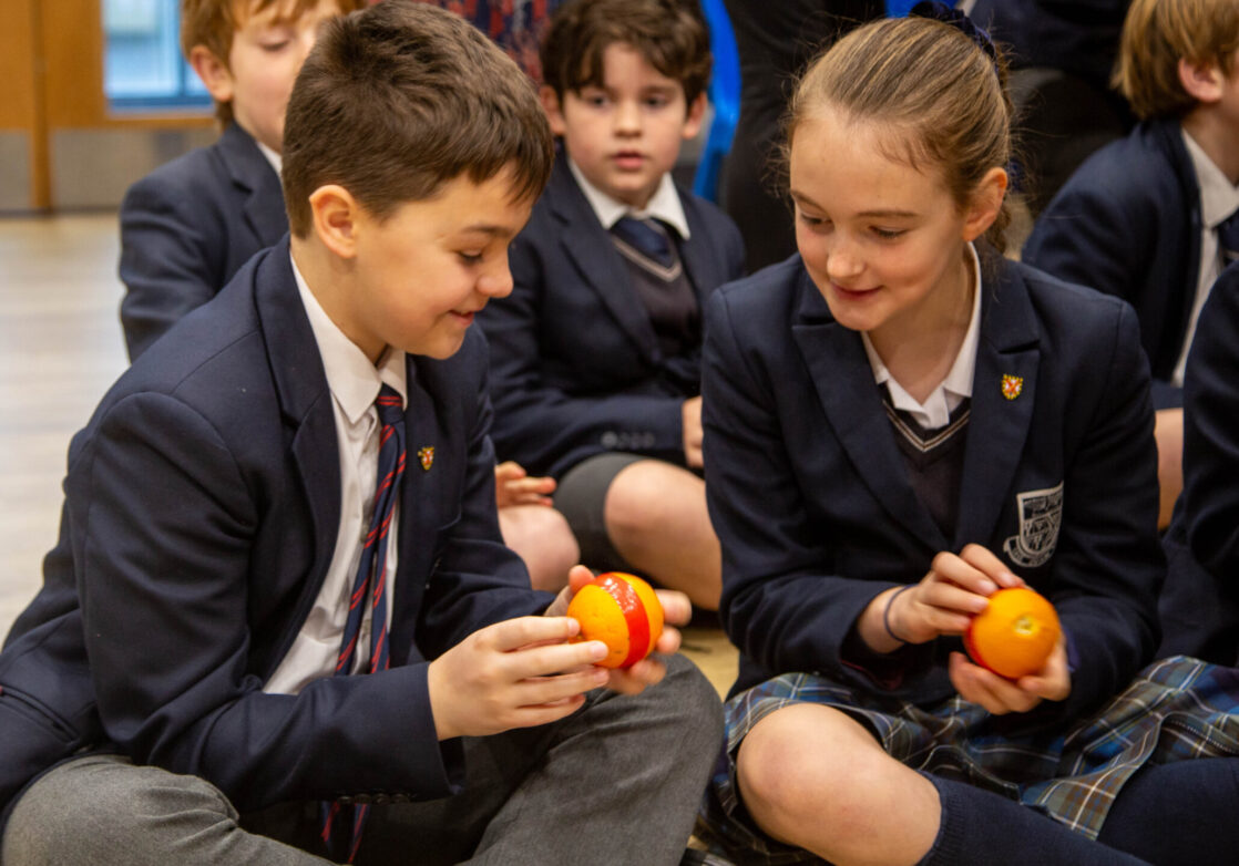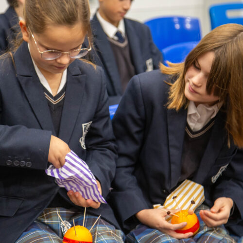 During each assembly, through a blend of songs, storytelling and reflection, pupils explored the symbolism found in each part of the Christingle. The orange, representing the world, is first wrapped in a red ribbon to symbolise Jesus’ humanity, divinity, love and guidance. The four cocktail sticks represent the four seasons and the corners of the Earth, while the fruits and raisins decorating the orange symbolise the sweetness of Christ and serve as a reminder of his presence in the communion bread and wine.