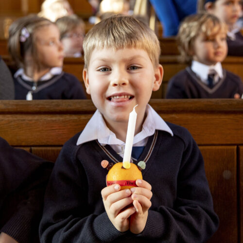 Our Pre-Prep pupils travelled to the Senior School, where, welcomed by members of the Sixth Form and Year 11, they had their special Christingle in the Chapel.