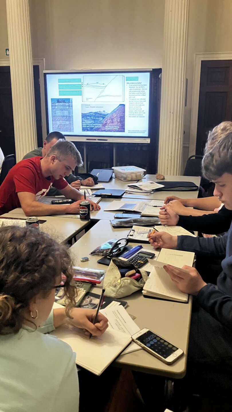 On the final day, students visited the Somerset Earth Science Centre in the Mendips, where they explored two active quarries to learn about extraction and processing methods. They also had the privilege of speaking with Ben Dormer (Operations Director at John Wainwright & Co Ltd) about the industrial and engineering applications of geology at Moon’s Hill Quarry. The visit concluded with an engaging lecture from Prof. Peter Hardy, who traced the region’s geological evolution from ancient volcanic eruptions 400 million years ago to the sea-level changes of the Jurassic Period that shaped today’s Mendip landscape, now recognised as an Area of Outstanding Natural Beauty.