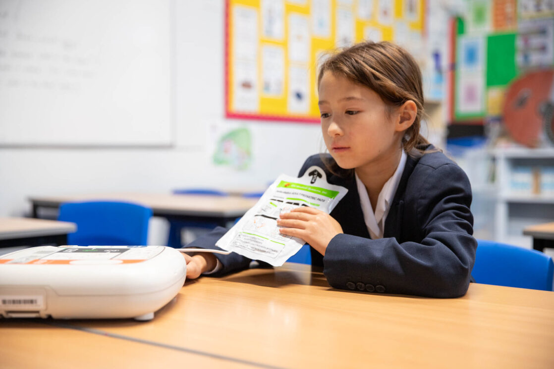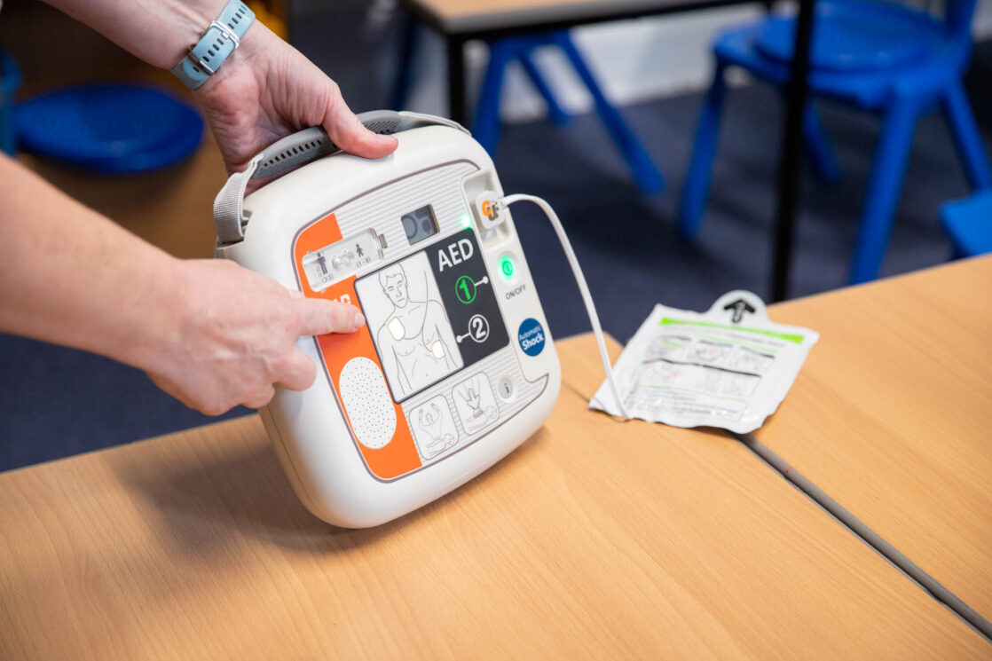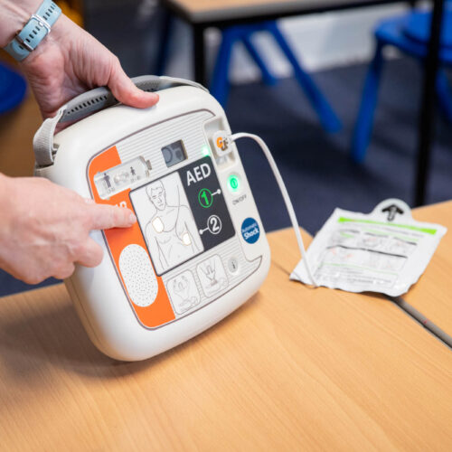 During one of their classes, pupils were shown how to use a defibrillator. We have been in a fortunate position to have had our own school defibrillator for many years, which has always been located inside the back door of Treliske House.