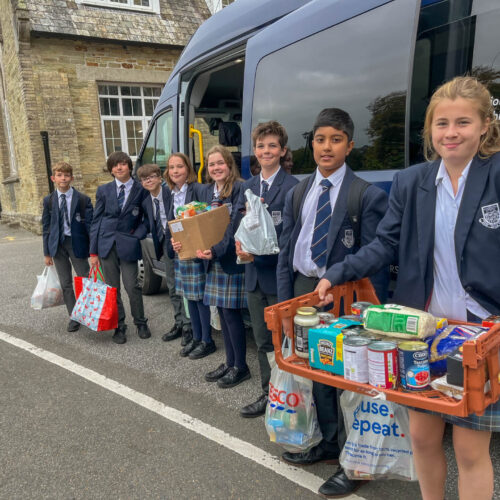A group of Year 6 House Captains and members of our Senior Community Action Team (CAT) headed to Newquay with our School Chaplain, Rev Helen and Mr Silk (Assistant Head (Pastoral) at Truro School Prep). Laden with minibuses filled with necessities, loaded by our Year 8 pupils, our representatives delivered these much-needed supplies to the foodbank. Here, pupils learnt first-hand from staff Zoe and Nicola why the foodbank is so vital to members of our community and the astounding impact that it has on people’s daily lives.