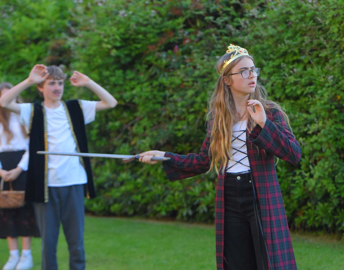 Through connections made at Truro School, Celia joined local production company ‘Bodkin Theatre’ over the summer holidays, assisting with costume and production. She has also performed at The Minnack Theatre and had the opportunity to meet Mike Shepherd of Kneehigh Theatre, whom she credits as an inspiration, at a workshop hosted in The Burrell last year. Alongside this, she has also participated in combat workshops hosted by the school Drama department and has credited her growth to teaching staff Mr Oldfield and TJ Randell.