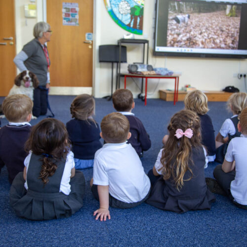 As their learning deepened, the children discovered that dogs do many important jobs to help people. They learned about the police dogs, therapy dogs, and assistance dogs that support individuals with hearing or visual impairments. Pupils were lucky to meet Tayto, Truro School Prep’s much-loved therapy dog, and hear from Miss Pomery, who shared fascinating insights into her father’s police dog and the vital work they do together.