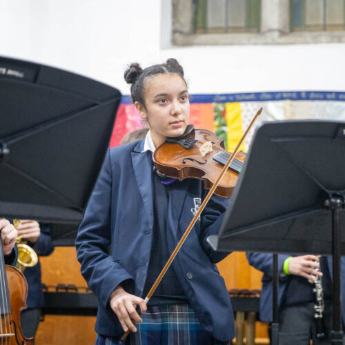 Among the standout moments were a fantastic guitar performance of Take Me Away by Lash from Year 7 pupil Jas, and a simply stunning violin solo of Por Una Cabeza by Carlos Gardel from Year 8 pupil Sufi. Both pupils were later highlighted by the adjudicator as “stars of the future”.