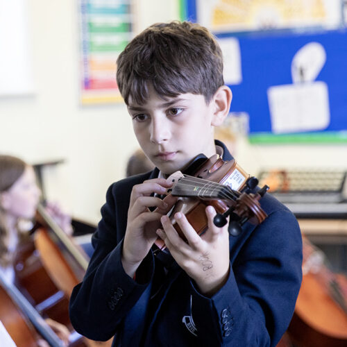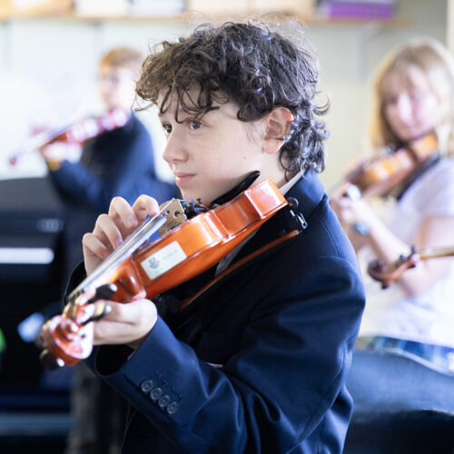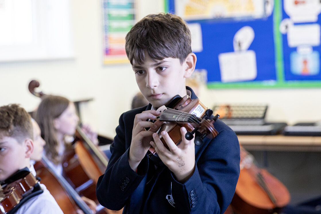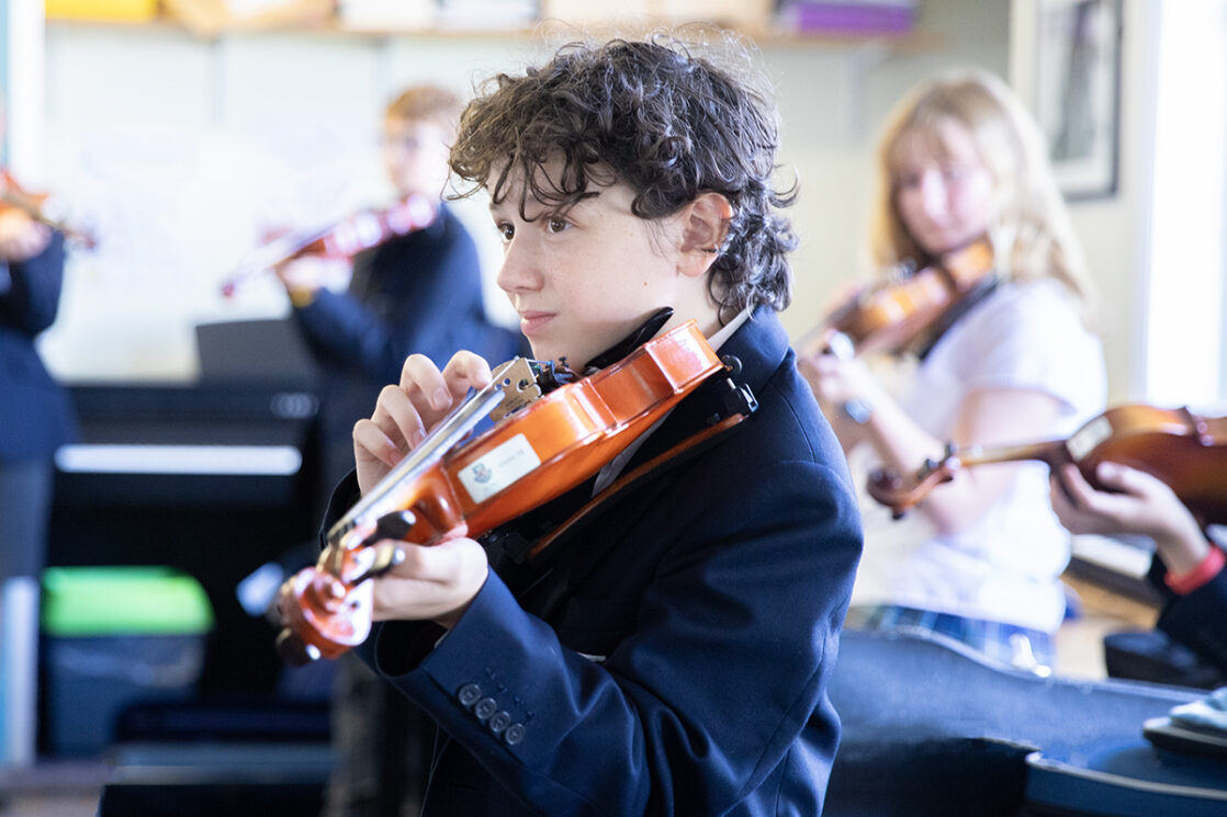 From September, one of the Year 7 music lessons every week is devoted to Truro School’s Instrumental Scheme. This scheme gives pupils the opportunity to experience first-hand the joy of learning an orchestral instrument. Those who are already learning an orchestral instrument are placed in chamber groups with pupils of a similar skill level and assigned a professional coach.