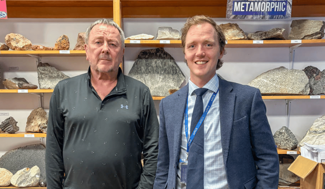 Ian took time to visit his former classroom, had a good catch up with Miss Hope (current Head of Geology), and with Mr Blackie – who joined the department when Ian left.