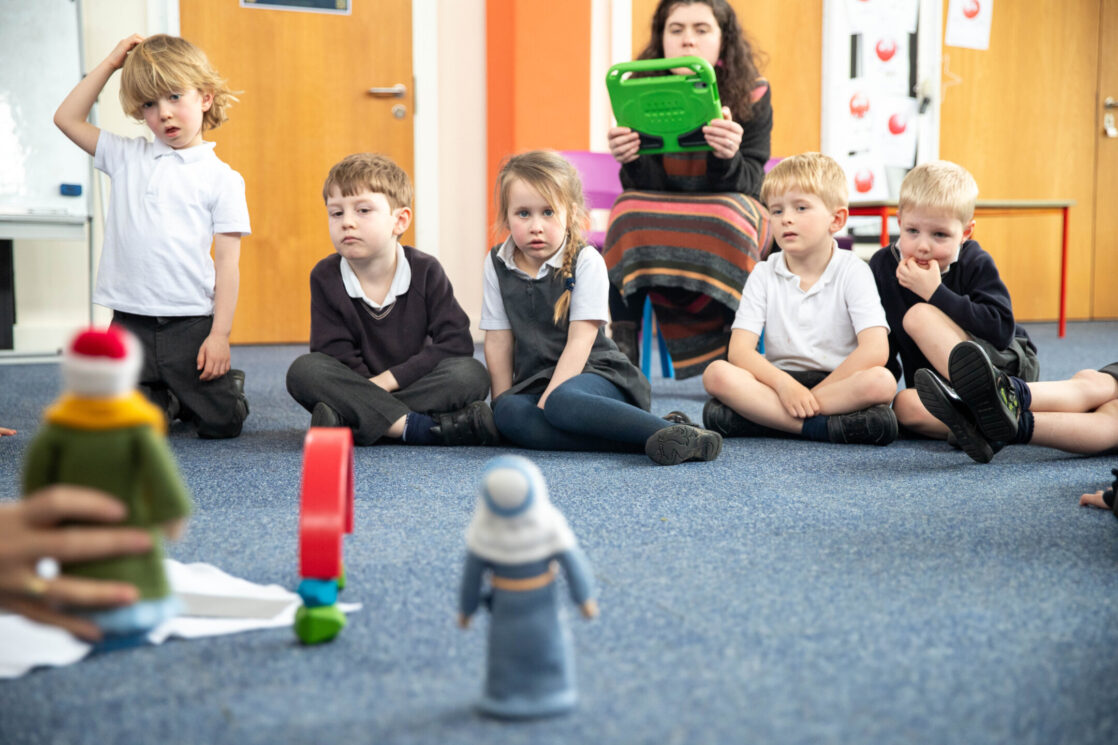 This week in Pre-Prep our Reception children gathered excitedly in the hall for a very special story. Waiting for them was Rev Helen, our School Chaplain, along with some colourful puppet friends ready to help tell the story of Palm Sunday.