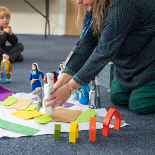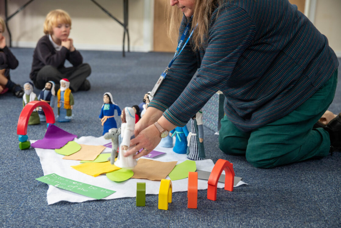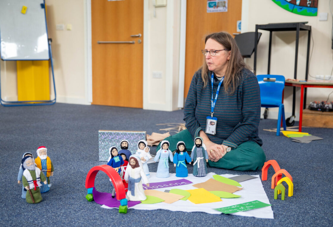 Through the puppets, Rev Helen brought the story to life for the children, explaining how Jesus rode into Jerusalem on a donkey while crowds of people welcomed him by waving palm branches and shouting with joy. The children listened carefully, while learning about this important moment in the Easter story.