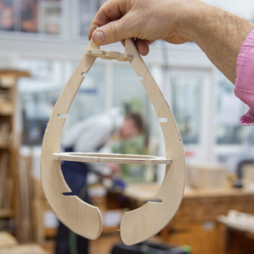 Sixty per cent of the final mark is based on the personal project, where students have free rein to explore a topic of their choice. Many current and past students have focused on lighting and furniture design, while one student this year is manufacturing carbon-fibre shells using the 3D printer, vacuum bag process, and Fibonacci sequence.