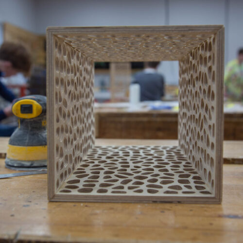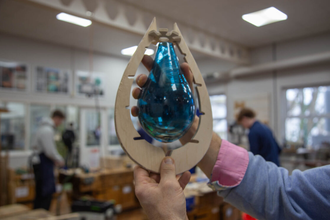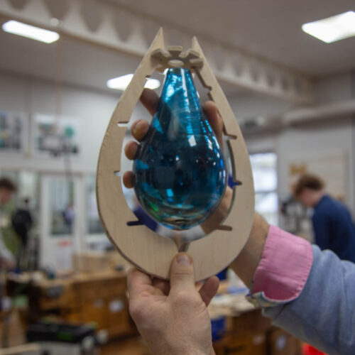 Throughout the course, students have learned new skills and refined techniques acquired in the lower years, making full use of the department’s extensive machinery. Truro School boasts a large DT suite with multiple machines and experienced Technicians on hand to teach. Equipment includes a full-size CNC router, vacuum bag press, and 3D digital scanners, allowing students to work at a high capacity in a real-world environment. Many students have also collaborated with external suppliers, providing briefs and obtaining quotations for their work. One student even had the opportunity to blow his own glass structures off-site.