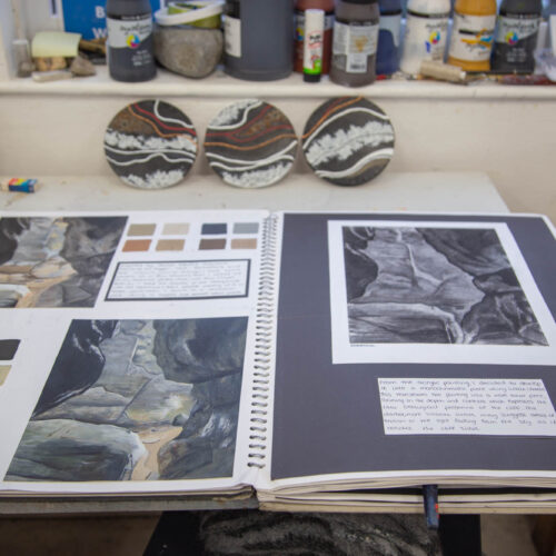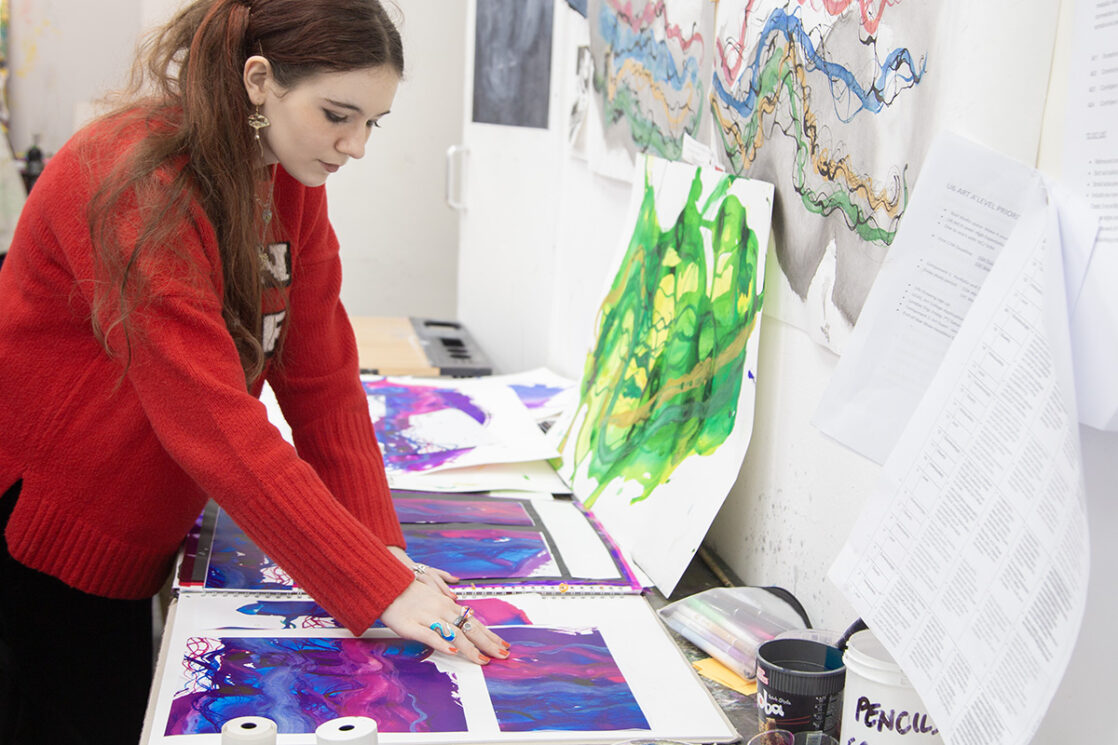 Annie, who has a strong passion for Geology, is studying A-Level Art alongside Biology and Geology, which she plans to pursue at university. Her Art project abstractly explores geological rock forms, building on themes from her GCSE work. With encouragement from Mrs Cucknall and Mr Meads, Annie has embraced abstract techniques and expanded her skill set. She explained, “I am pleased with my A-Level choices. The structure of the courses has worked perfectly, as the Art practical comes earlier, allowing me to focus on revision for my other subjects later.” Annie is considering a gap year, potentially including a ski season in Canada or Europe, before choosing between offers from Cardiff, Exeter, Birmingham, Bristol or Liverpool to study Geology.