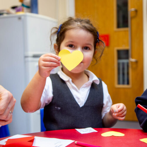 A highlight of the assembly was learning about the tradition of red envelopes, which are often given as gifts to share good fortune. Inspired by this custom, every child received their own “envelope of hope” to create. Inside, they placed a picture of a horse, this year’s zodiac and a symbol of strength, energy and success. They also included a yellow heart, on which they wrote their own hopes and wishes for the coming year.