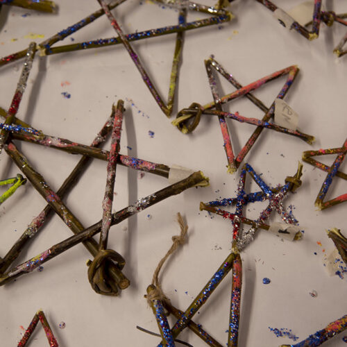 There were lots of decorations made: including willow stars, made from our school willow tunnel and covered in bio-degradable glitter, paper baubles and snowflakes, and sparkling Christmas trees. Alongside decorations, an array of festive gift bags and cards were made, all complete with lots of sparkles.