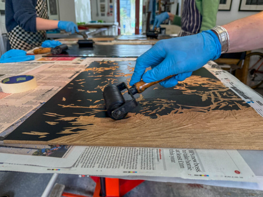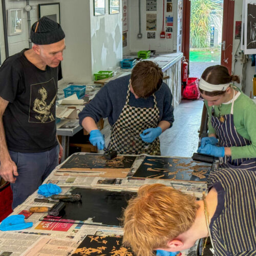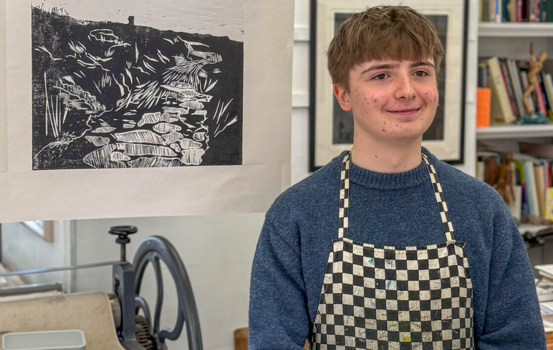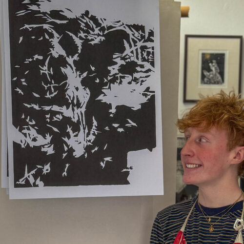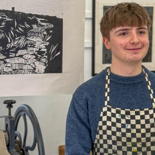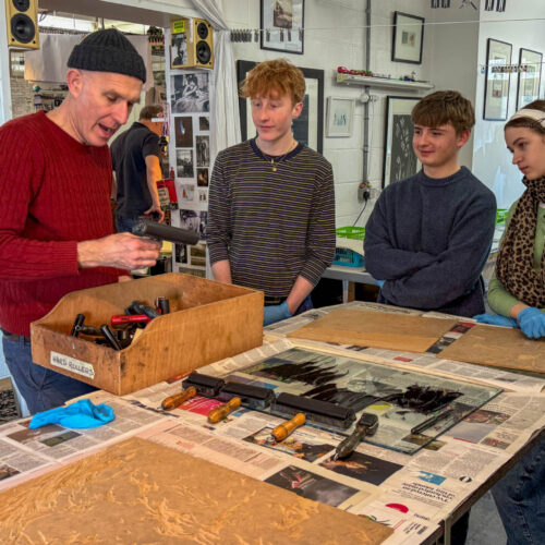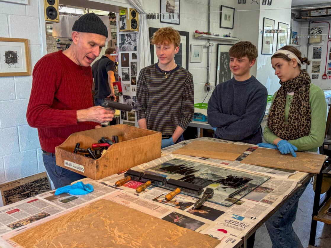 A-Level Art and Design students visited John Howard’s Print Studio in Penryn to print their large woodcuts in a professional studio.