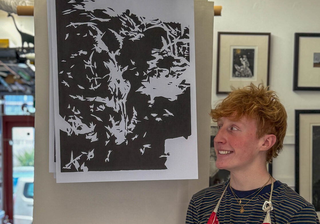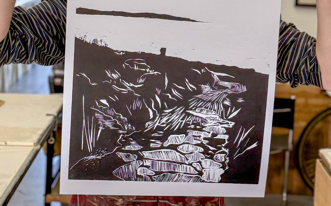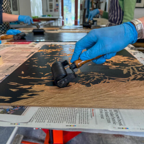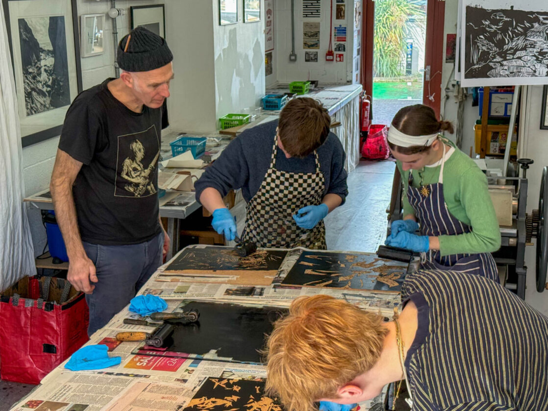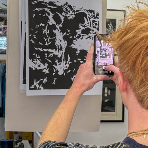 A-Level Art and Design students visited John Howard’s Print Studio in Penryn to print their large woodcuts in a professional studio.