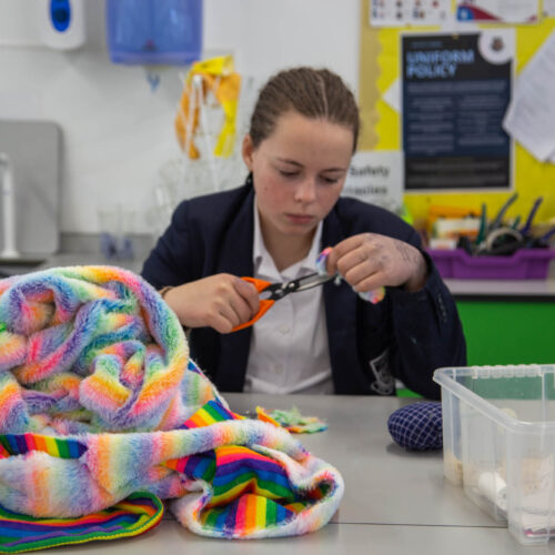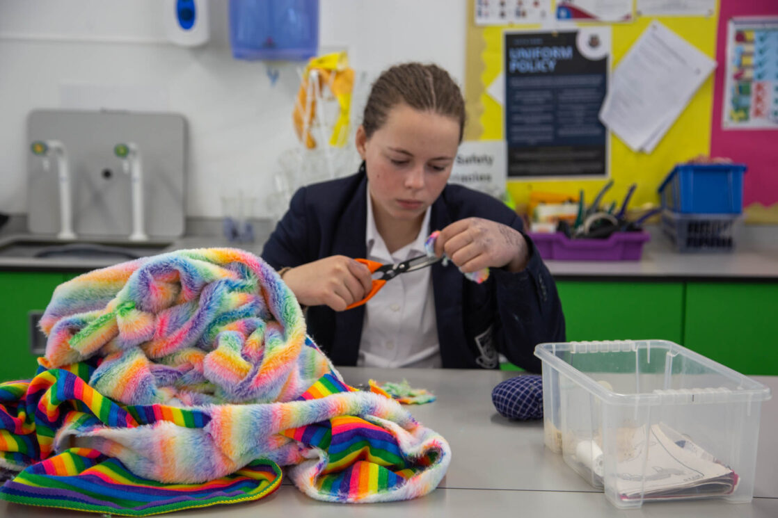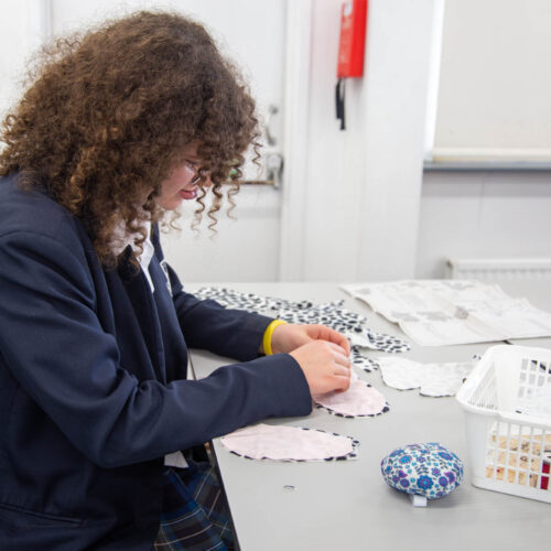 Learning different stitch types, having fun and improving on skills have been the aim of the game, with pupils recycling fabric, using scraps and learning how to cut their patterns economically as part of the process.