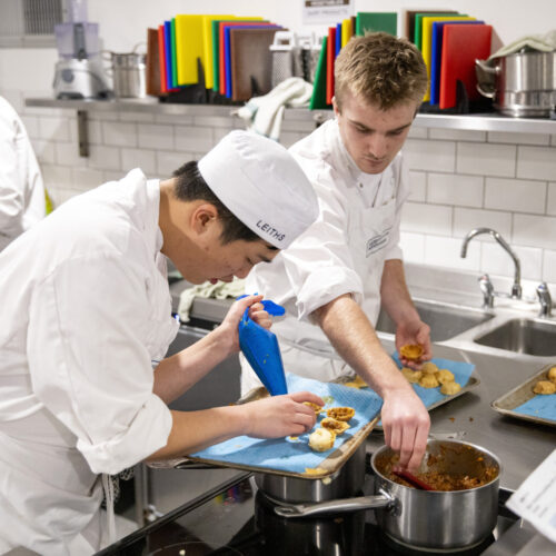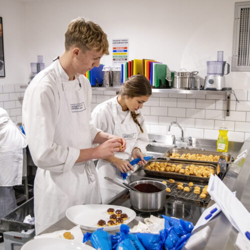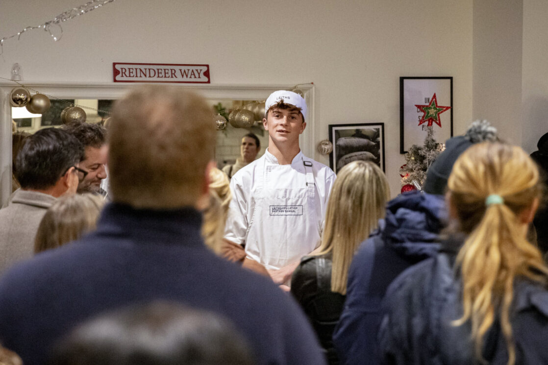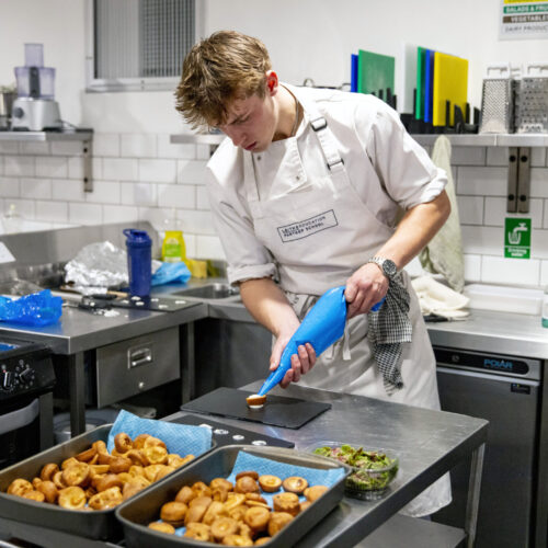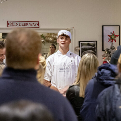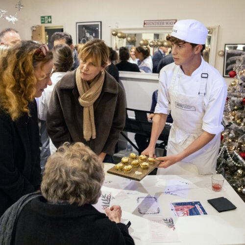 During the evening, Harry, our Deputy Head Boy and a Leiths student, addressed our guests. He said, “If I had been told at the start of Lower Sixth that I had to cook canapés for over 60 people, I might have just flatly refused. I could barely dice an onion, let alone make a caramel mousse and many other components en masse and under time pressure! I think the same could be said for a lot of us with minimal culinary experience leading into the course. As we progressed through, we gradually undertook more complex cooks, with multiple recipes and tricky techniques.”