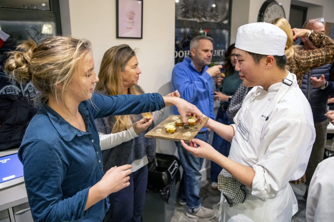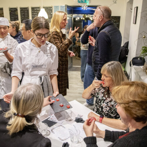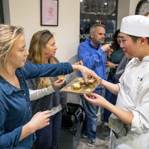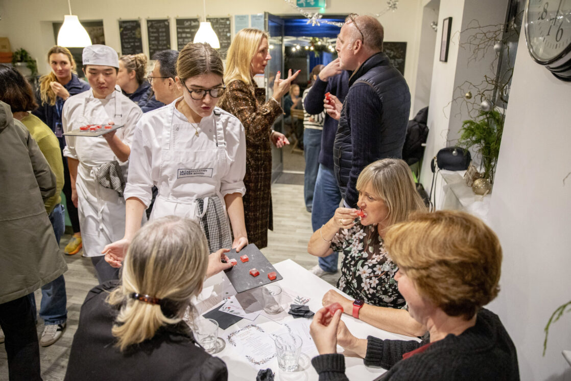 The calm, focused energy in the kitchen reflected the students’ growing confidence and expertise. Guests savoured plate after plate of beautifully crafted canapés, proudly prepared and served by the students themselves. The selection showcased an impressive array of both savoury and sweet delights.