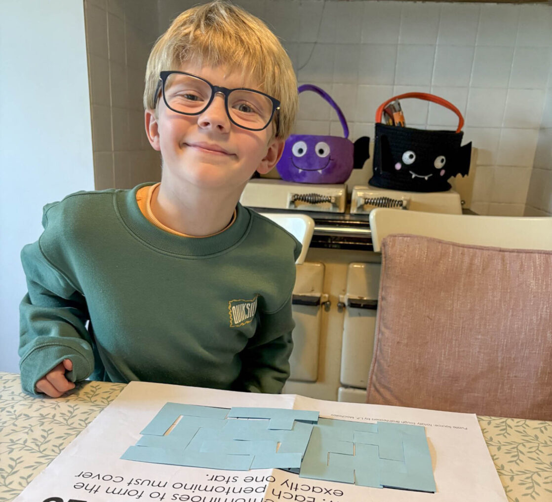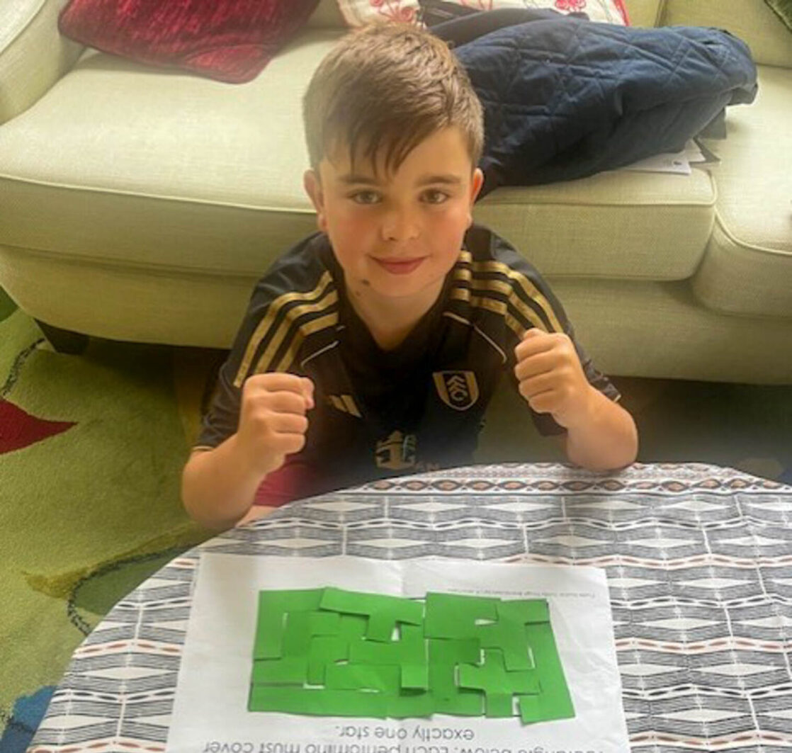 What made this challenge even more special was how far it travelled! We were absolutely amazed to receive photos of students completing their pentomino puzzles not only at home, but all around the world. Some families tackled the challenge while relaxing in California, others while on adventures in South Africa, and many more from holiday spots and cosy corners all across the UK. It’s wonderful to see Maths being enjoyed everywhere, from kitchen tables to distant time zones.