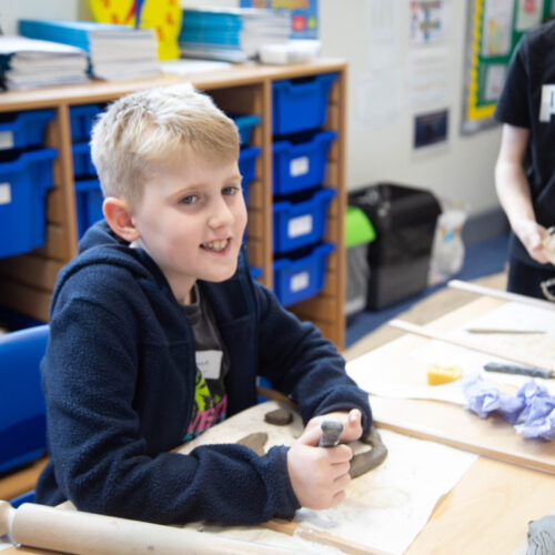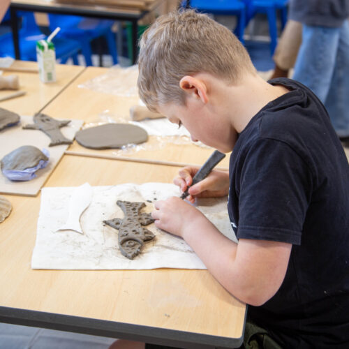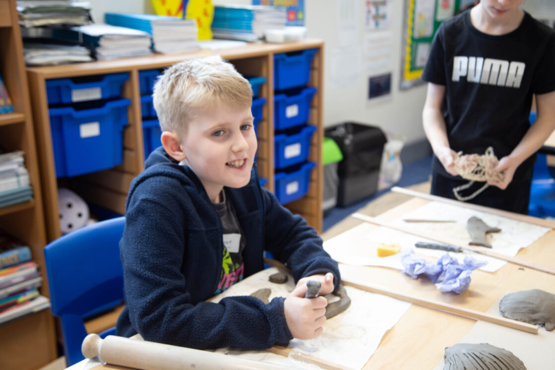 Creativity and sustainability were also front and centre in the DT room, where Matt Nott from One Blue Eye joined Mrs Knight. Together, they guided pupils in transforming old plastic sweet tubs into templates for robot faces and bodies. This not only gave the robots an eco-boost but also encouraged pupils to think differently about plastic waste and the exciting possibilities of repurposing materials to create something new and wonderful.