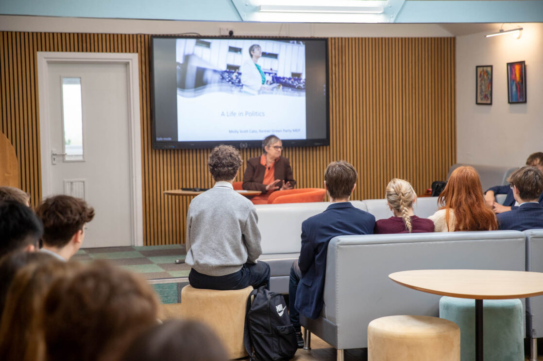 Later in the day, pupils had the opportunity to hear from Molly Scott Cato, a British Green politician, economist and former Member of the European Parliament for South West England. Molly shared her expertise on Green Economics, encouraging students to think about how economic systems can support both people and the planet.