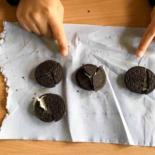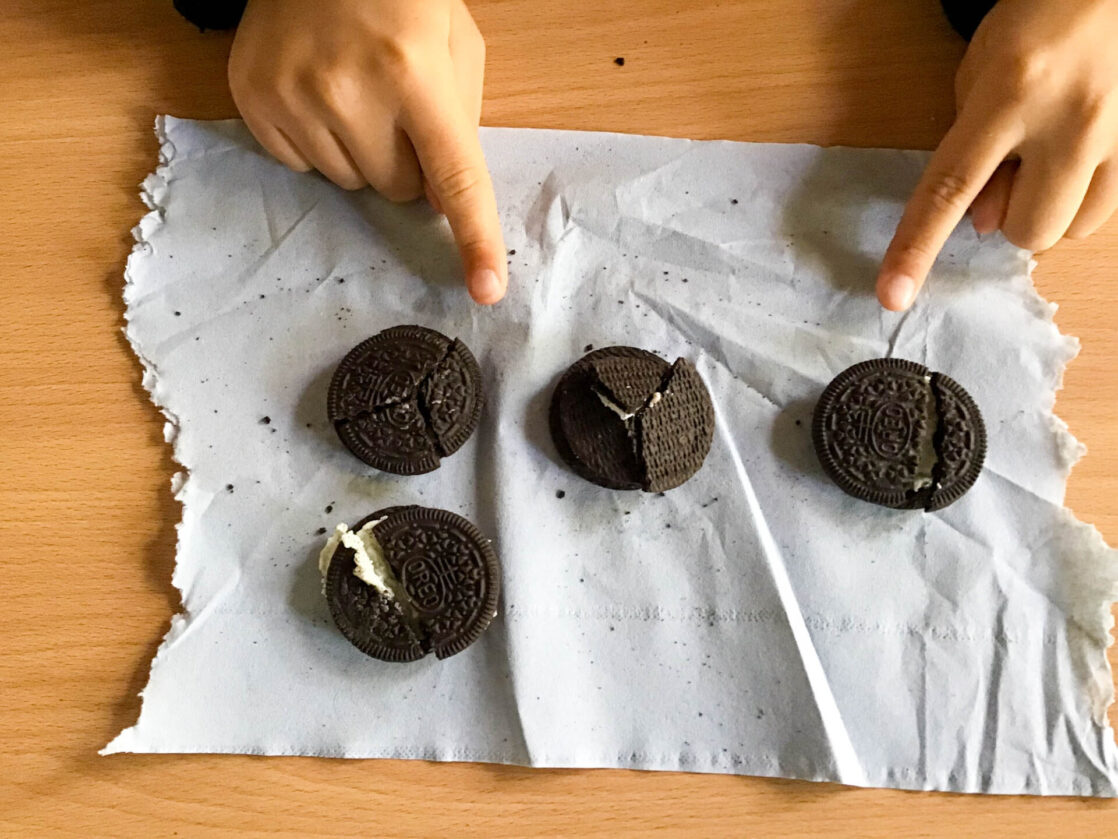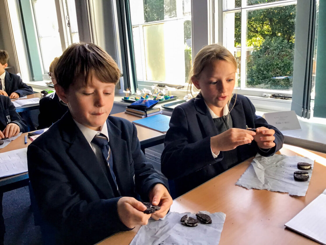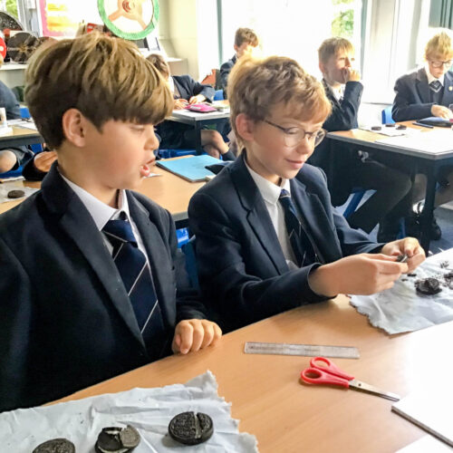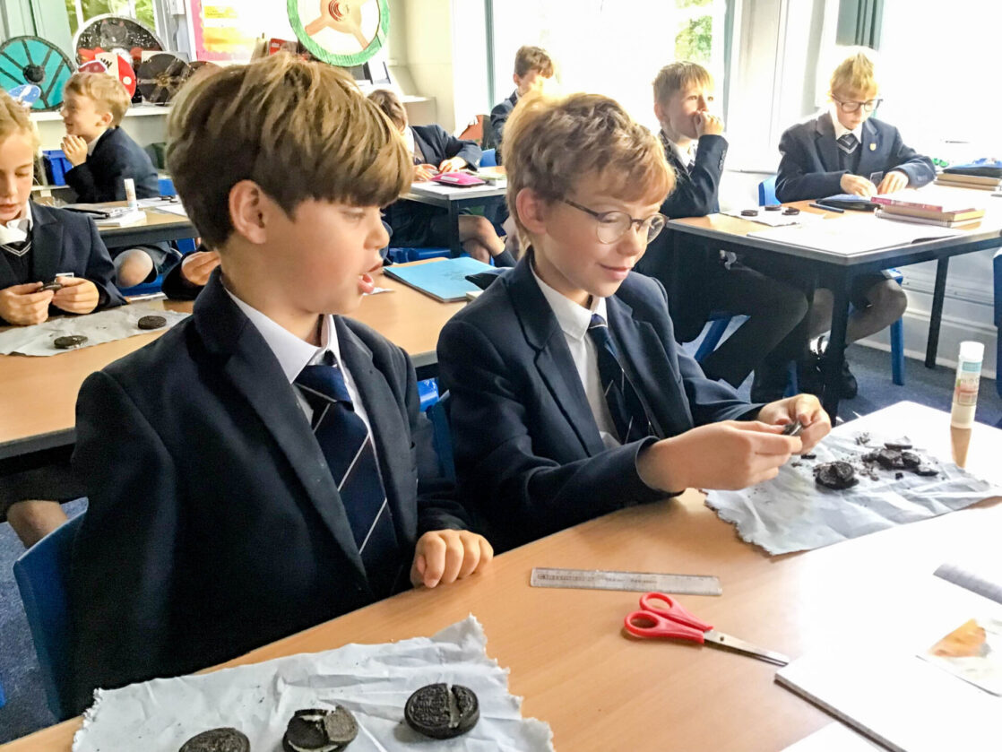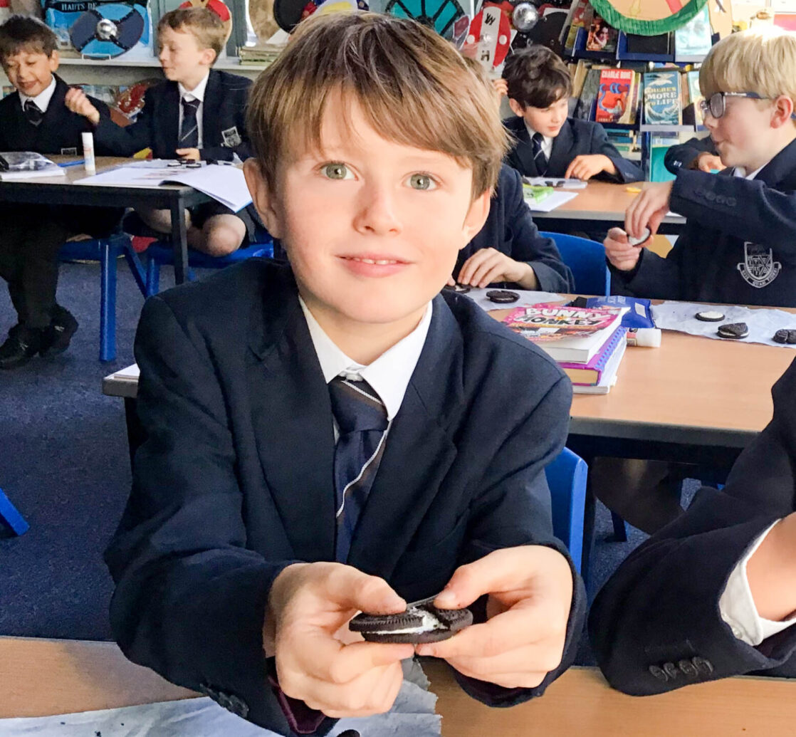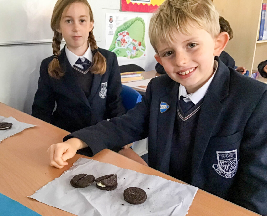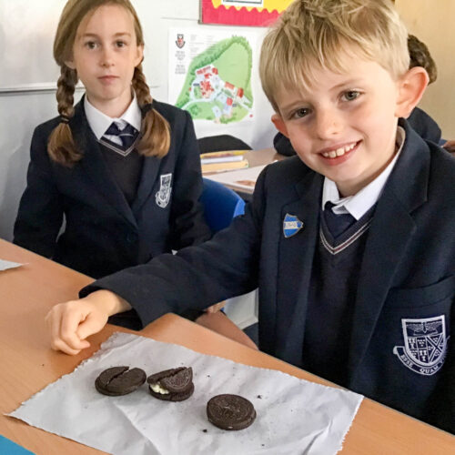 They then used Oreo biscuits to explore the three different types of earthquakes and to learn about tectonic plates. Pupils removed the top layer of the biscuit and broke it into pieces to represent tectonic plates. The creamy filling represents the soft layer that the plates move around on. Pupils were able to explore how plates can move apart, push together or slide past each other.