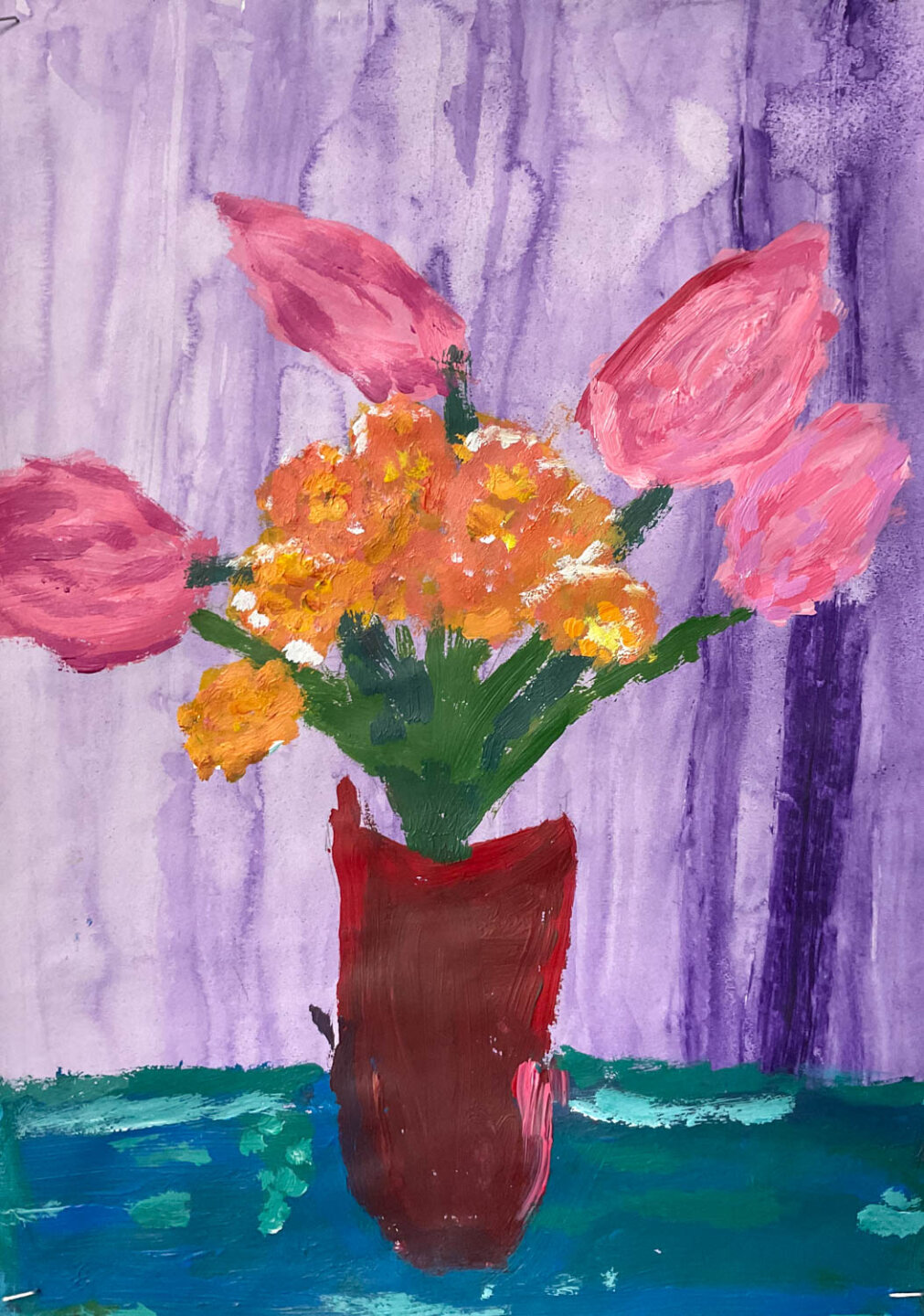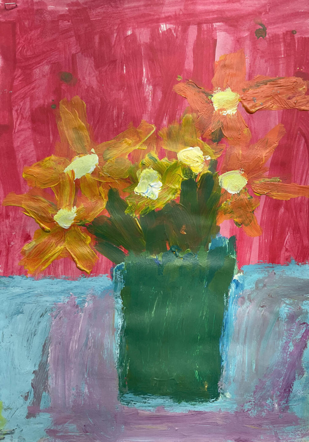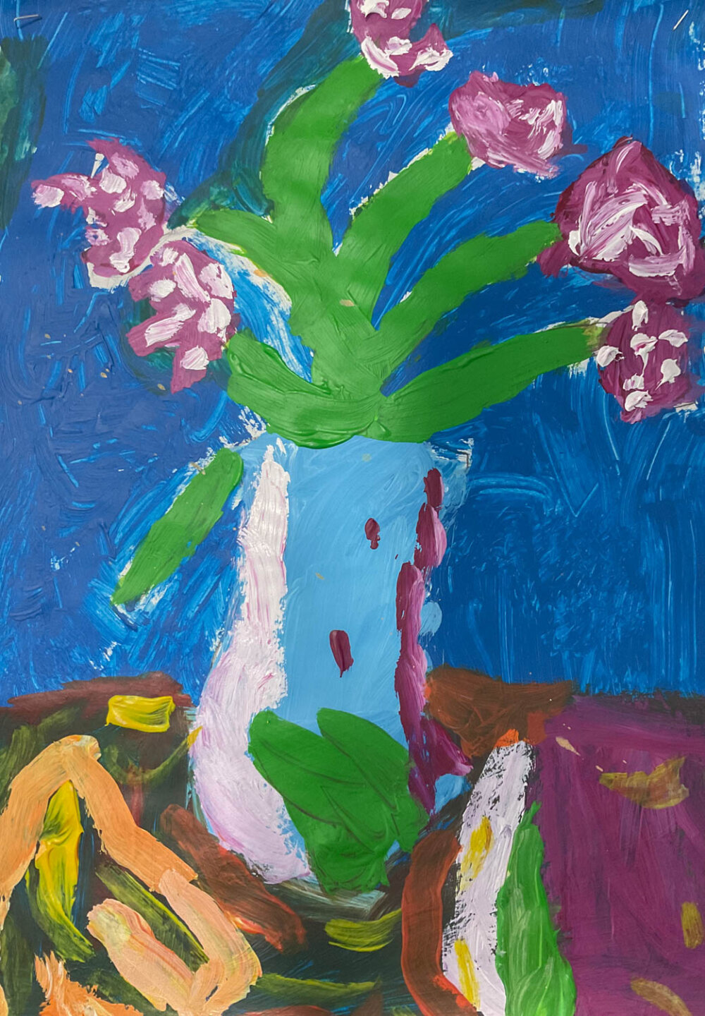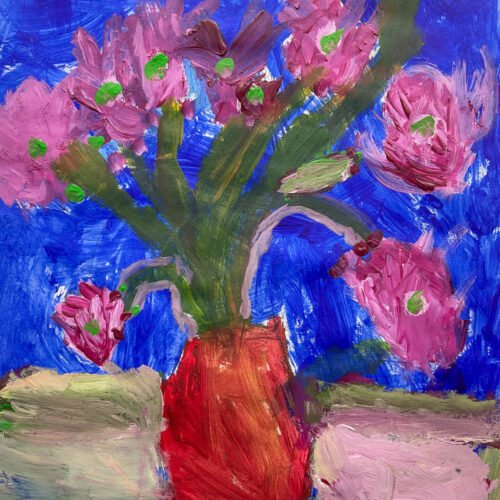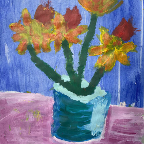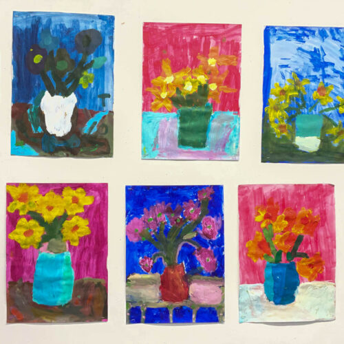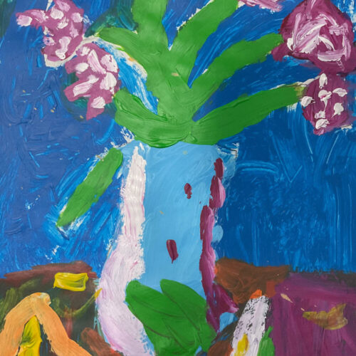 During lessons with Mrs Mahon, the children explored painting techniques, focusing on developing their skills with acrylic paints. A key element of the work was learning how to mix colours, enabling pupils to experiment with different shades and tones to bring their ideas to life.