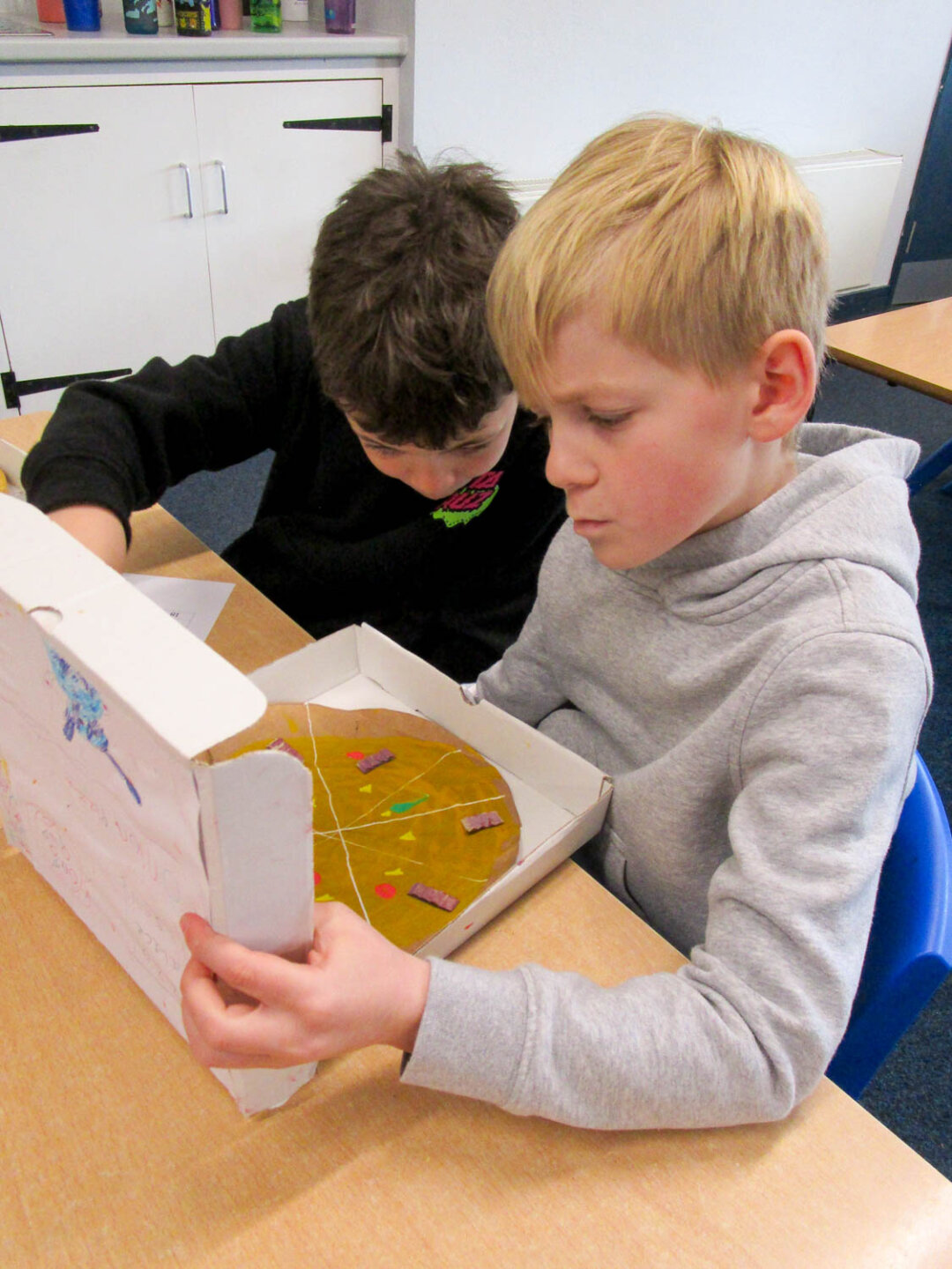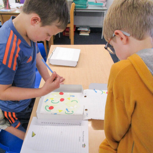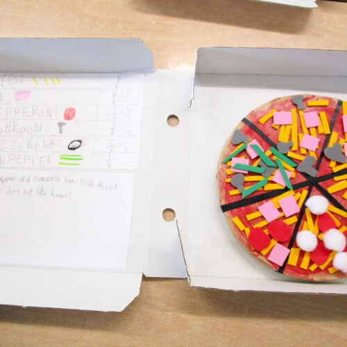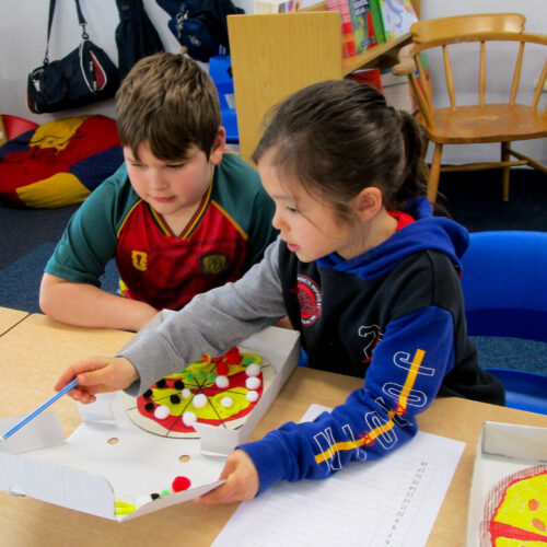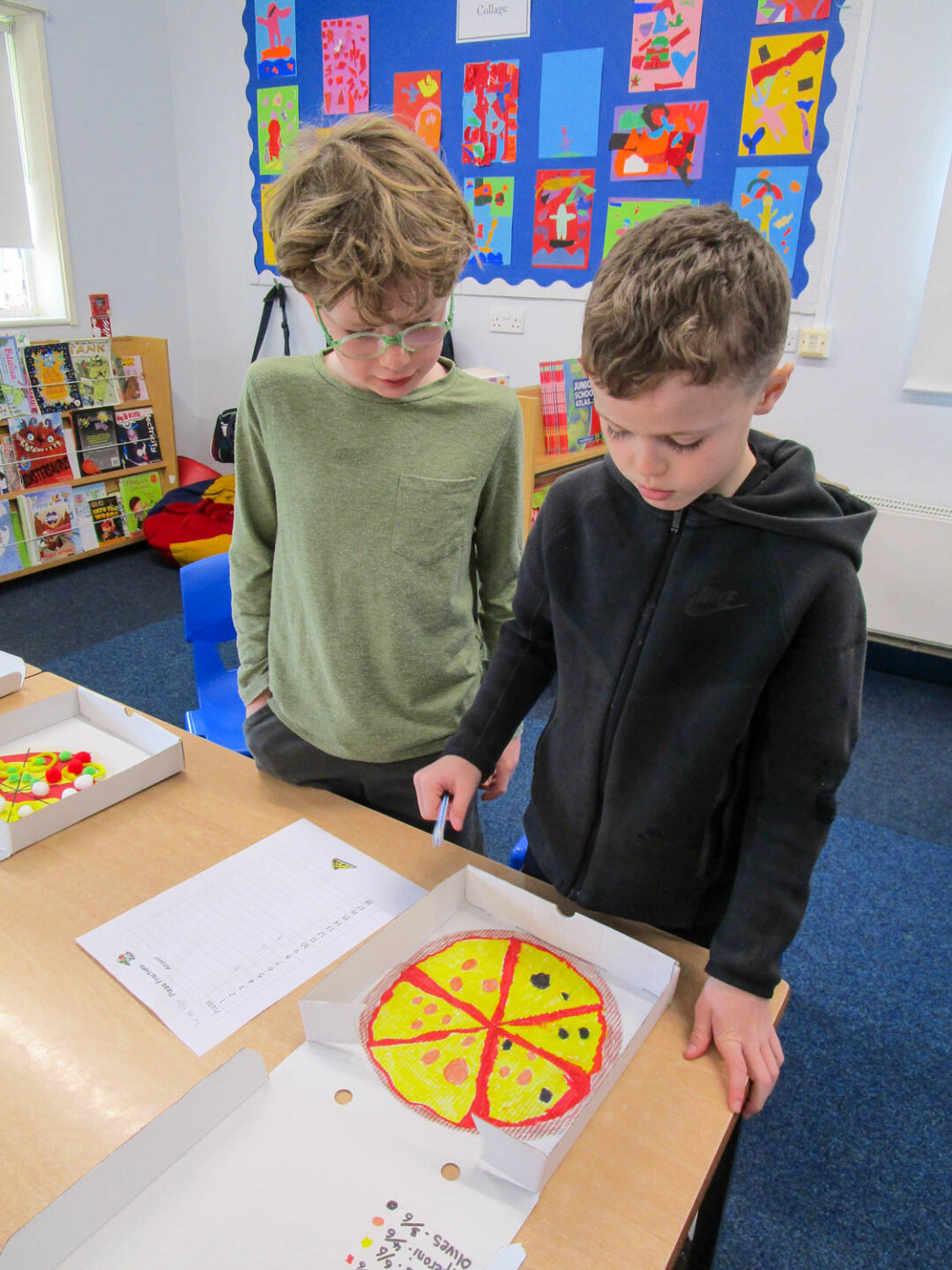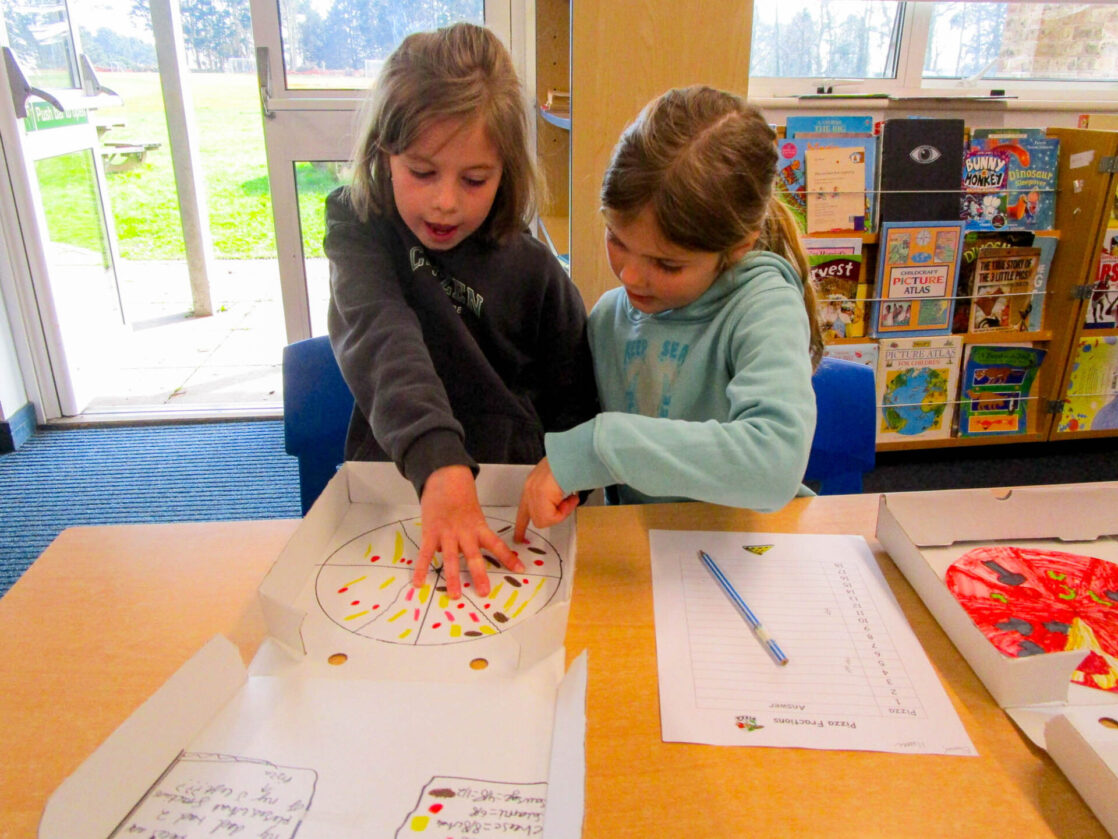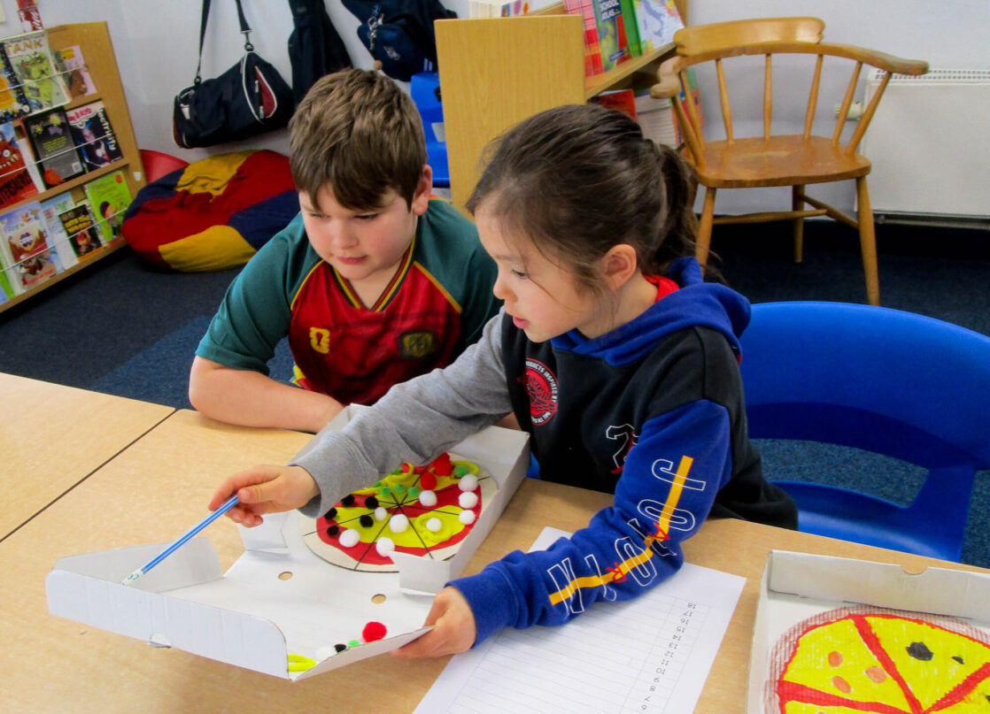 Pupils also wrote their own fraction-based questions linked to their pizzas that were shared with classmates, who worked together to solve the problems, discuss their reasoning, and explore which questions were more challenging and why.