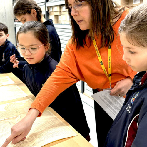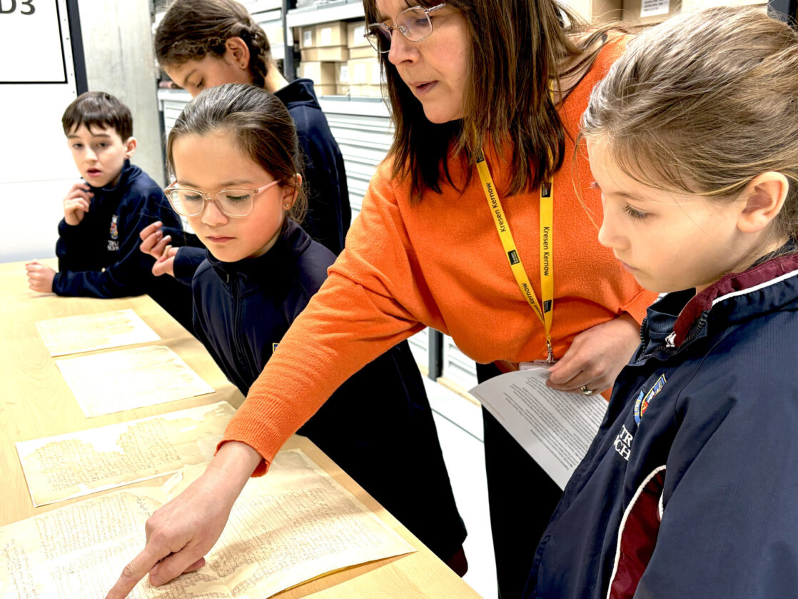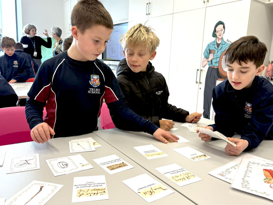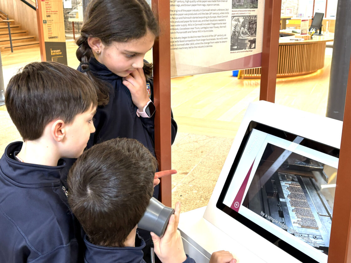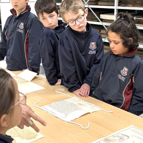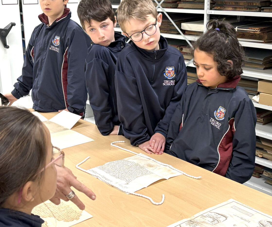 The visit began with a tour of the strongroom, home to more than 1.5 million historical records. These include documents recording the births, marriages, deaths and baptisms of Cornish people, as well as extensive records from trading companies, including shipping and mining businesses. The children were particularly amazed by a huge historic ledger weighing an incredible 21kg. The ledger is so heavy that it takes two adults to lift it from the shelves.