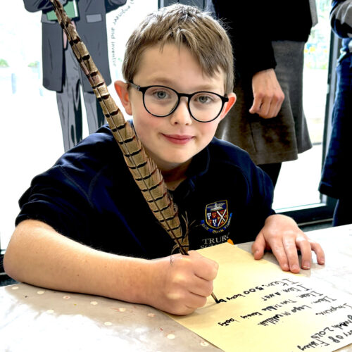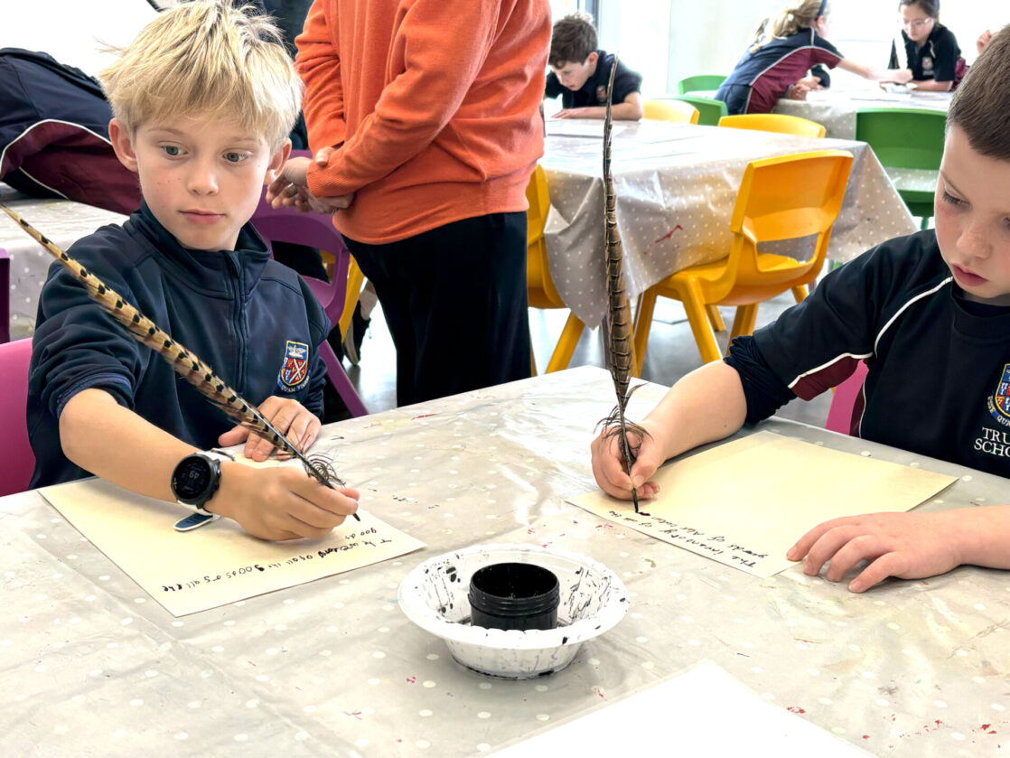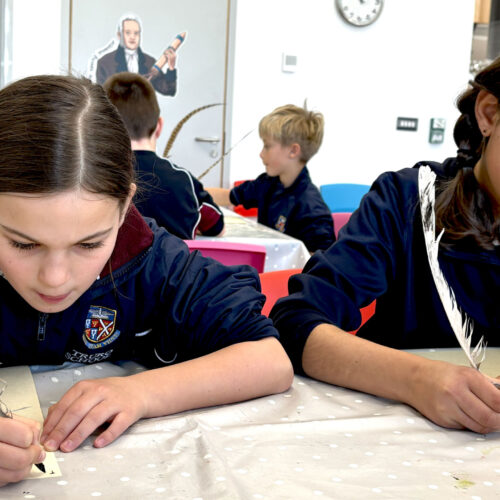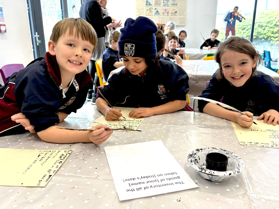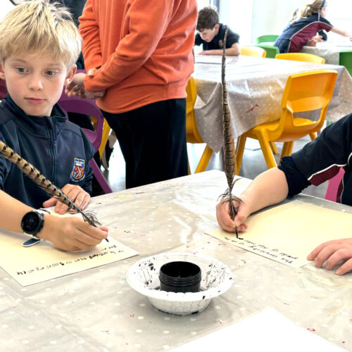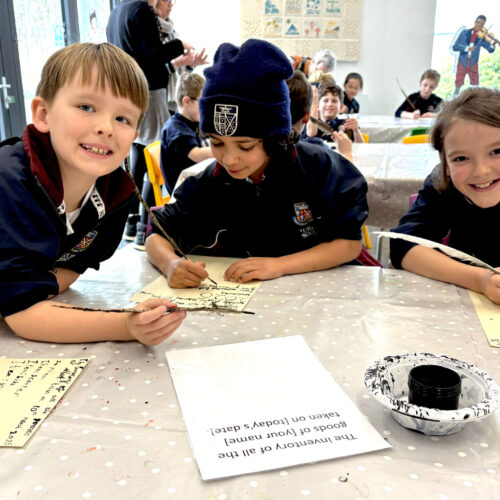 Back in the education base, the pupils took part in a sorting activity, exploring the types of possessions different Tudor people might have listed in their inventories, which sparked plenty of discussion, especially about unusual items such as lutes and muskets. A highlight for many was writing their own inventories using a quill and ink, giving them a hands-on insight into how writing was done in Tudor times and helping them appreciate how few people were able to read and write during the period.