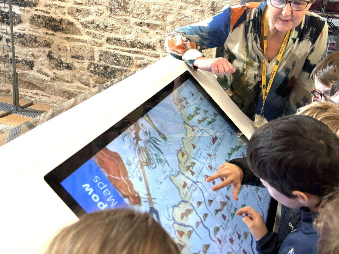 With so many items to store, organisation is key. The class had the chance to turn a large handle to move the rolling shelving units, revealing another treasure trove of historic mining and land maps dating back to Tudor times.