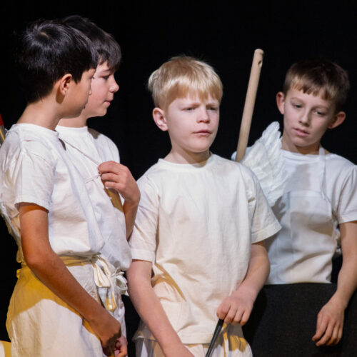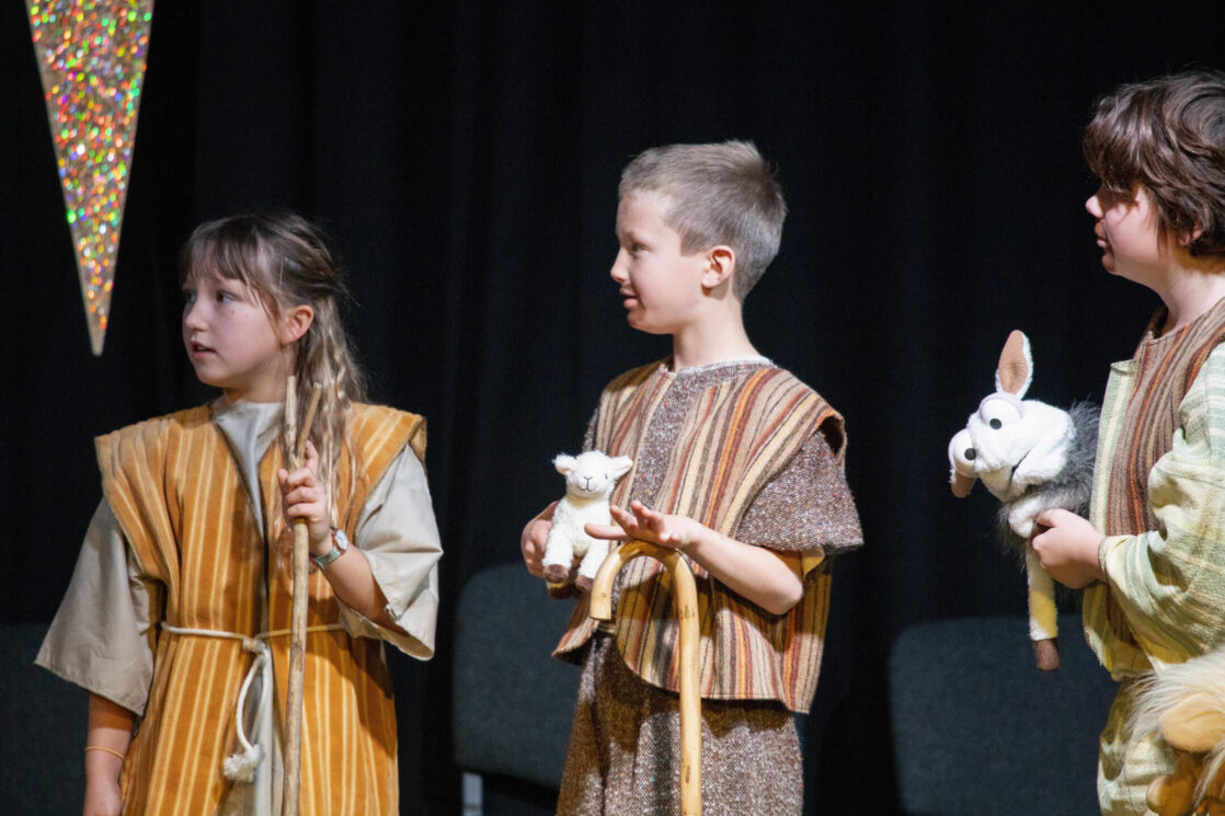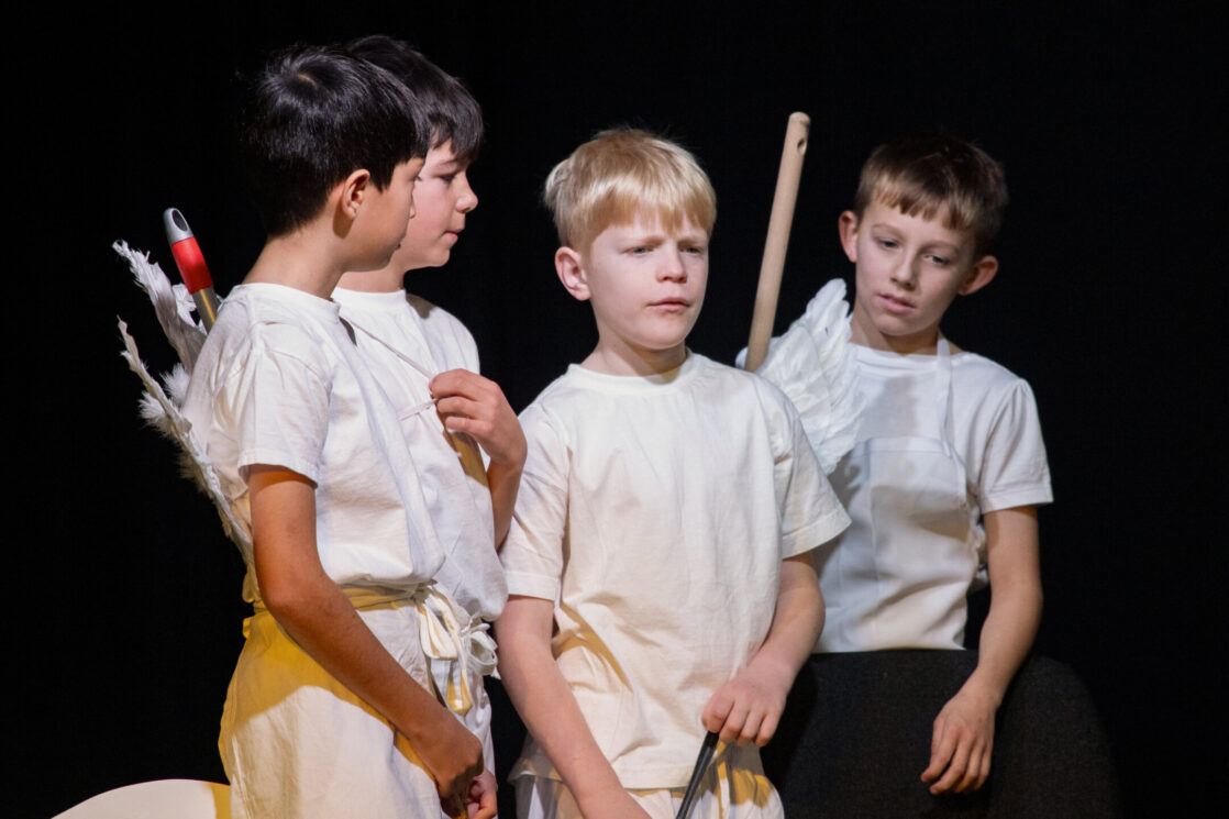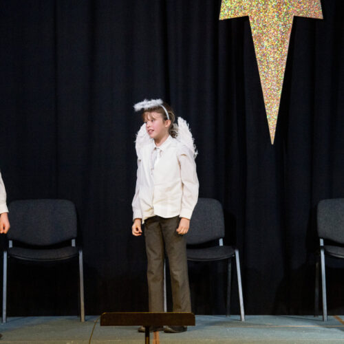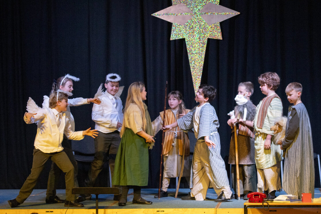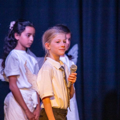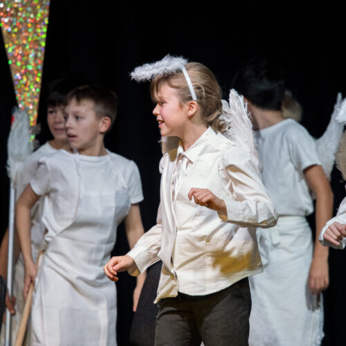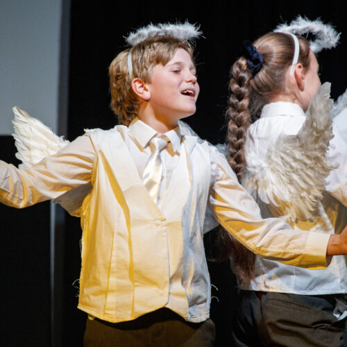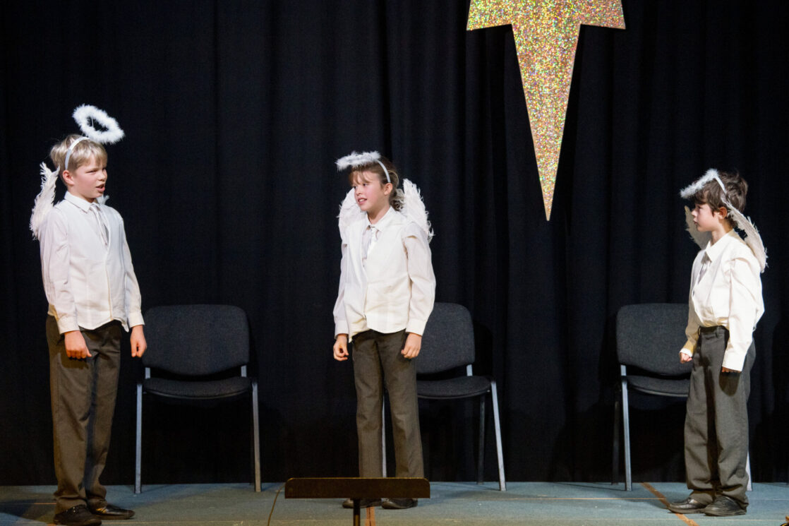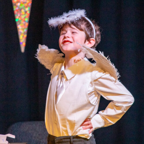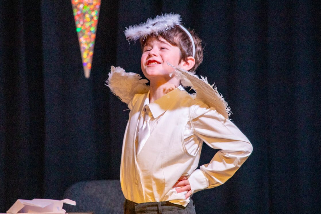 The play opens in 1BC, where work at “Divine Interventions” appeared quiet, until The Boss called with an urgent mission. From there, the audience was treated to a delightful journey through three acts, each led by a different Year 5 form. With the three archangels reappearing throughout the story, multiple pupils had the chance to step into their shining shoes, bringing humour, warmth and character to these iconic roles.