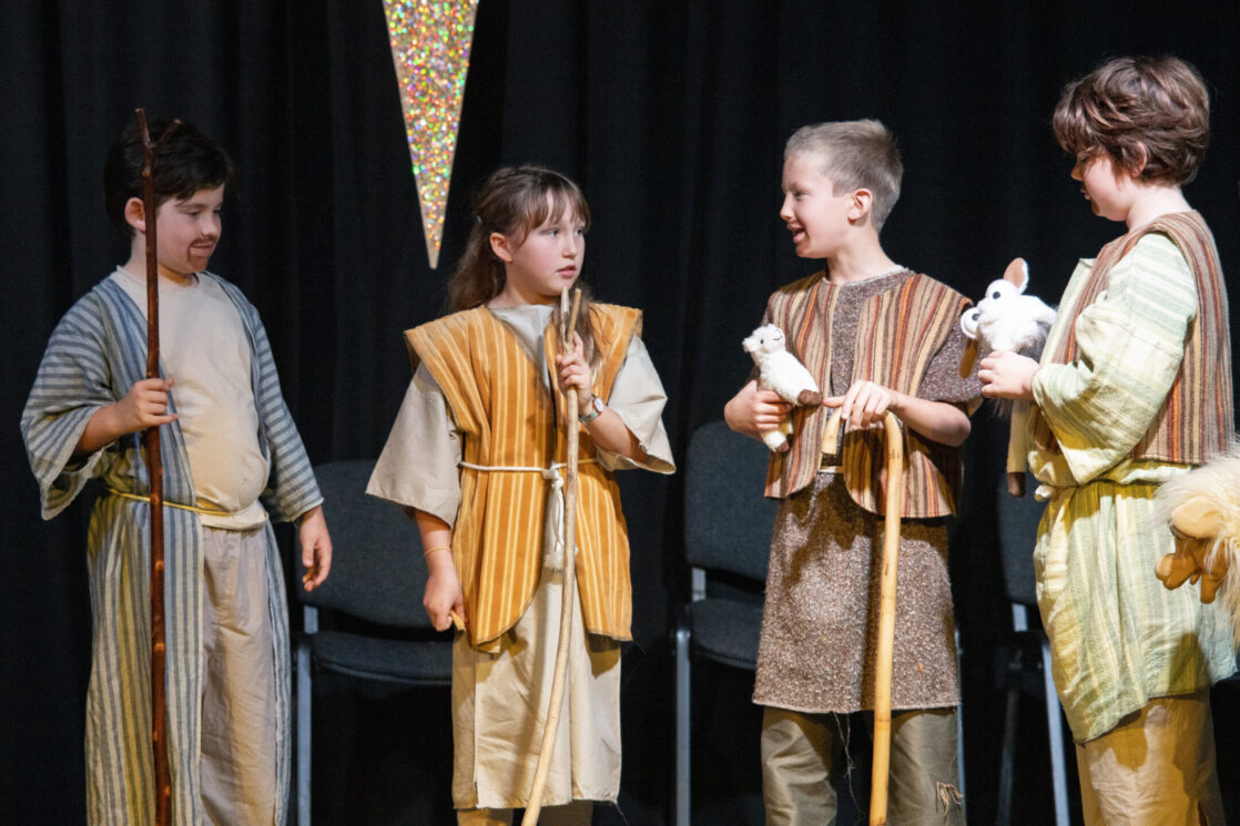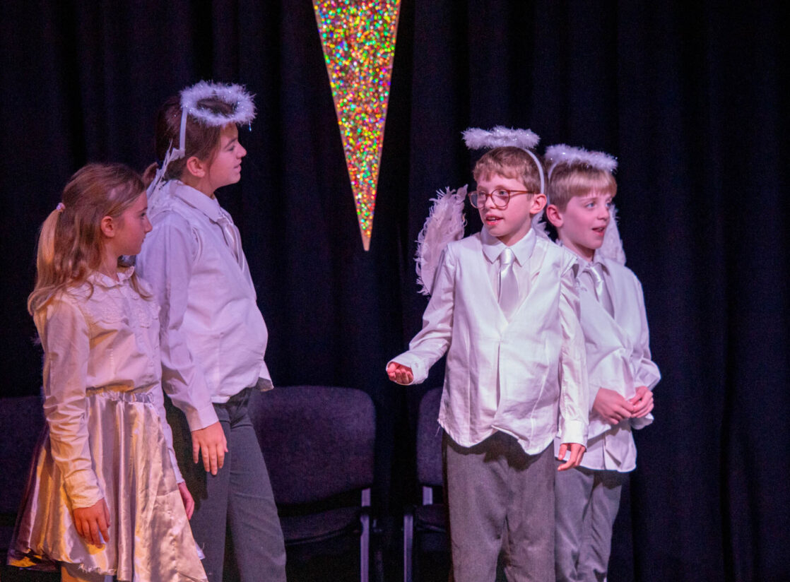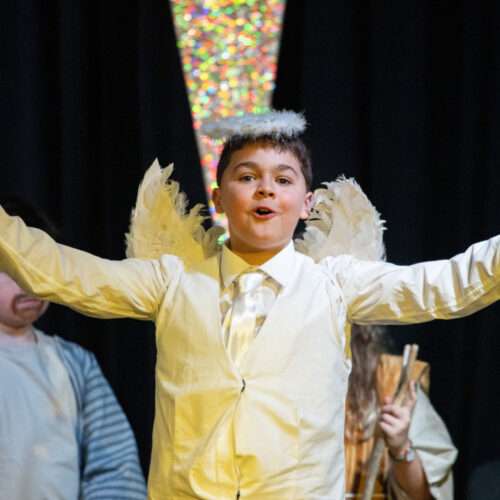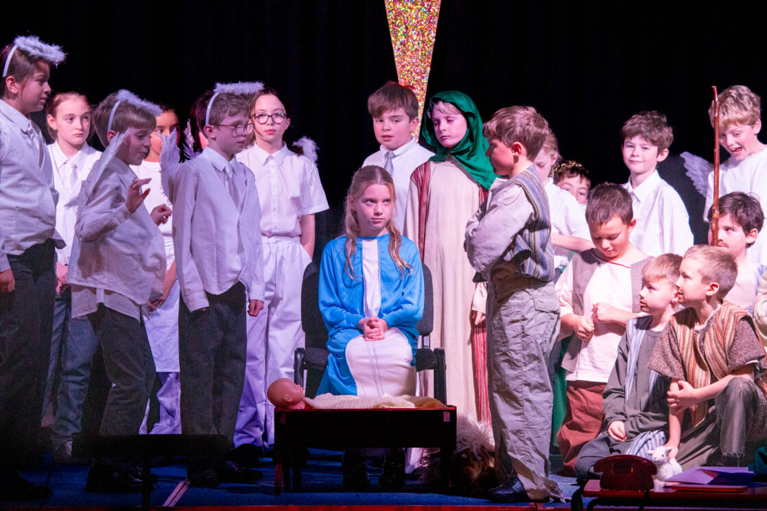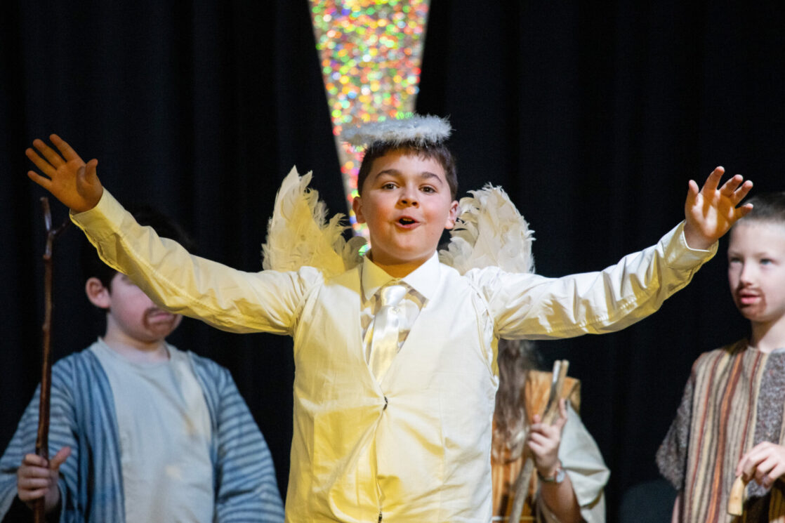 The production was a true team effort. The wonderful costumes and props, crafted by Sue Rowe, brought heavenly flair to the stage, while atmospheric clouds from Bex Knight and the DT subject leaders added a touch of magic. Thanks also go to James Frewer for technical support, Angela Renshaw for the uplifting “Glory to God” music, and Sue McIntosh and her team for set building and logistics.