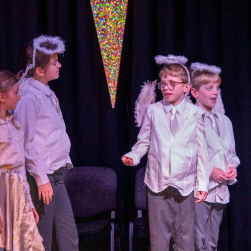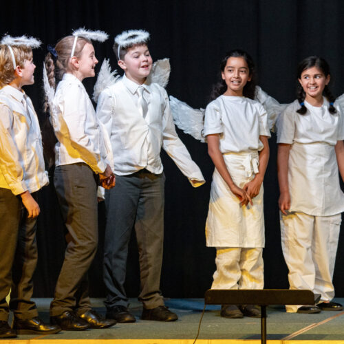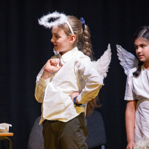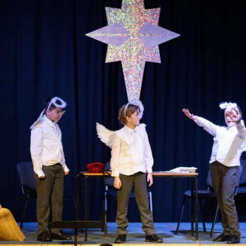 Our incredible Year 5 pupils lit up the Prep Assembly Hall with Divine Interventions, a warm-hearted and witty Christmas play written and directed by our very own Annabel Gregory. Set within a celestial agency run by busy and occasionally bewildered angels, the story follows Archangels Gabriel, Michael and Raphael as they dash between Heaven and Earth to deliver messages, guide humans, and ultimately remind today’s children of the true meaning of Christmas.