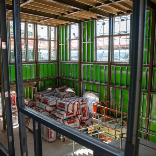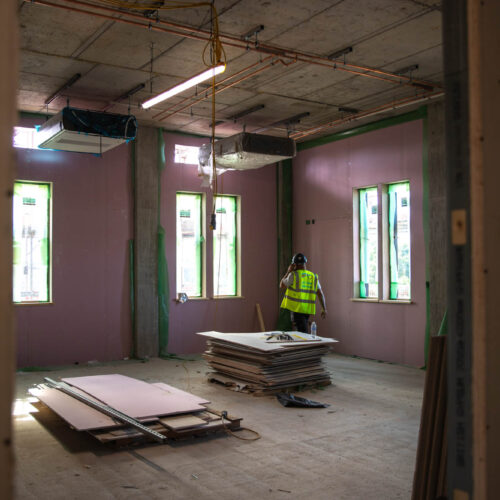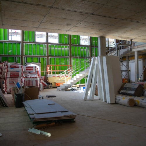One of the most exciting transformations is happening within the old Assembly Hall. By retaining its original structure, we are minimising the embodied carbon in construction, while giving the space a new lease of life. A new roof has been installed, sustainable timber windows are being fitted, and a mezzanine floor has been added to enhance functionality. The team is also recycling materials wherever possible, with plans to create a unique art installation from the hall’s original wooden flooring to honour its heritage. The space will eventually be transformed into a state-of-the-art 900-seat auditorium, offering unrivalled opportunities for music-making, drama, and large-scale school events.