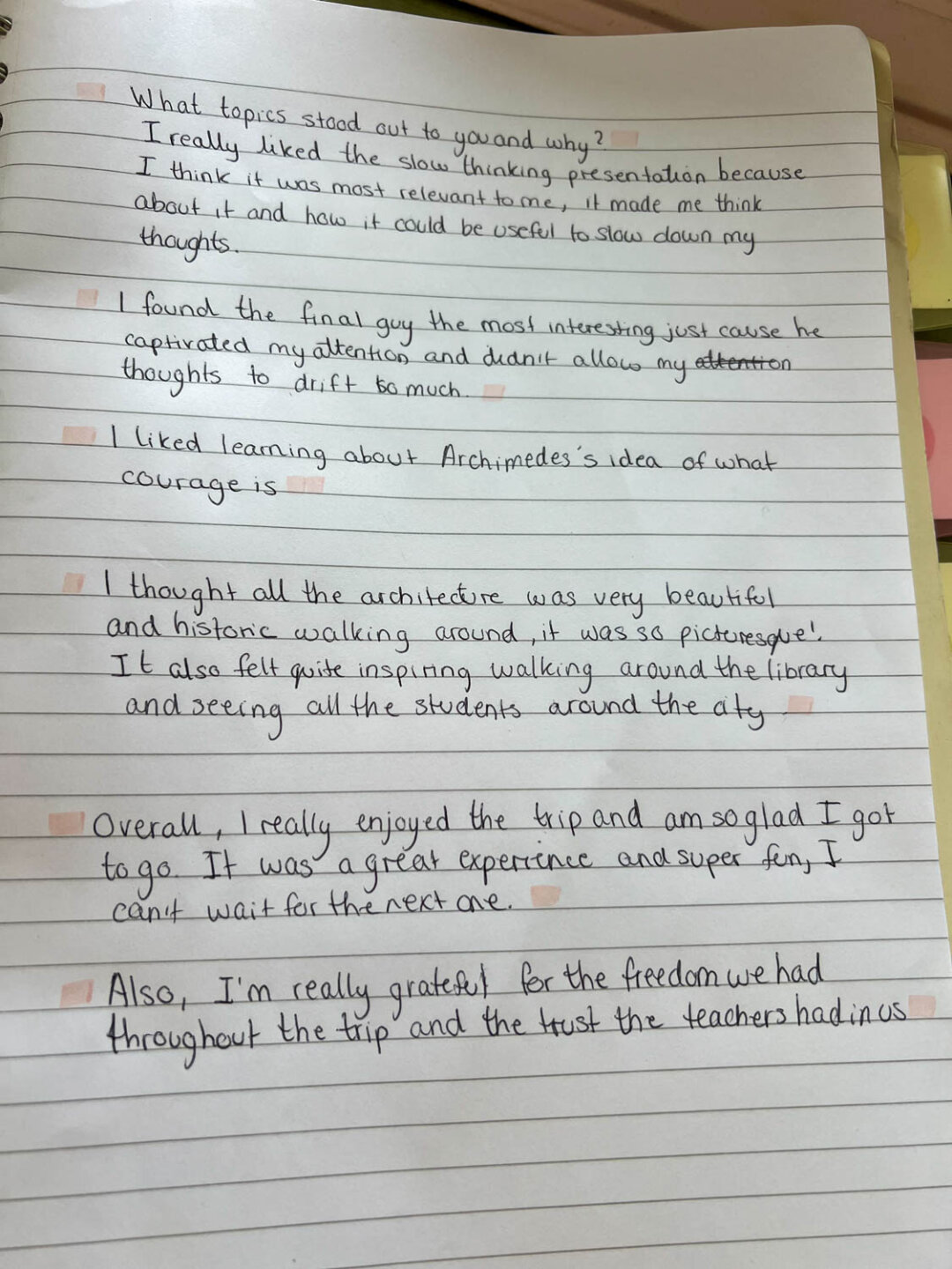 Isaac was especially captivated by several of the talks, particularly those focused on neuroscience, philosophy, and courage. “The talks that fascinated me most were the one discussing how music affects the brain, the tour of neuroscientific anatomy, the philosophy around slow thinking, and the talk on courage. The music-centred presentation was the one I learned the most from, and it was expressed in a far more exciting and emotive way than other presentations.”